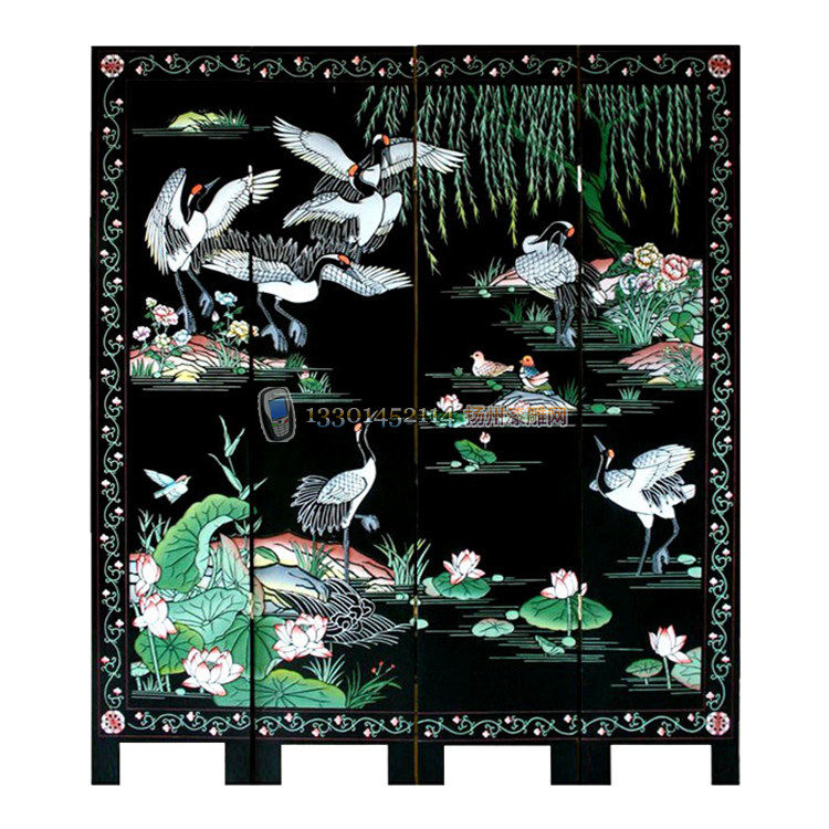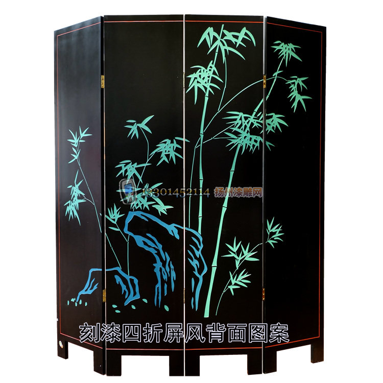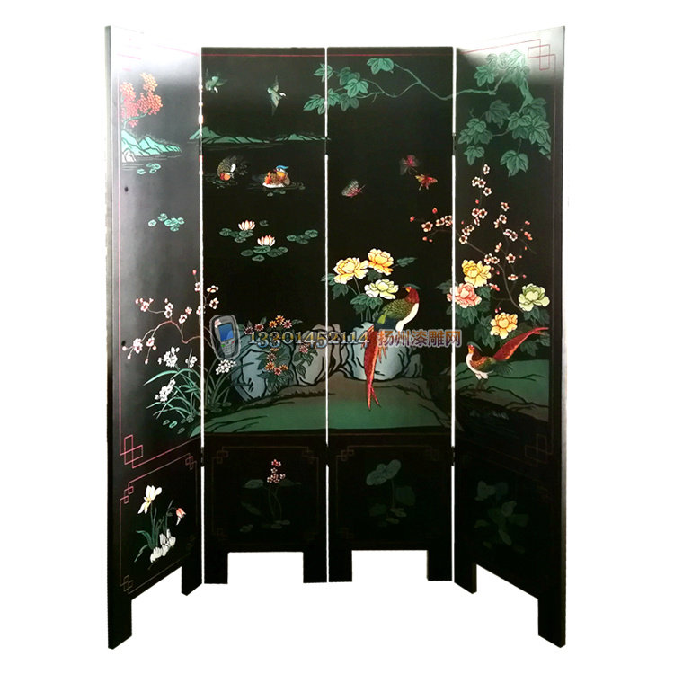 Yangzhou new lacquerware direct sales Classical home decoration carved dark four-fold screen partition a variety of flowers and birds customized