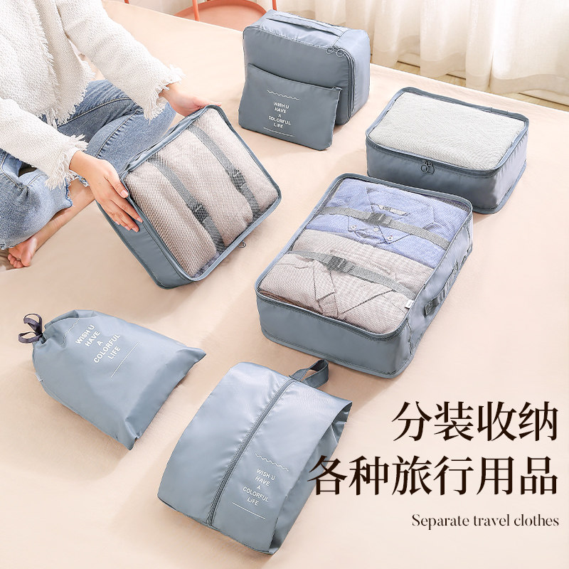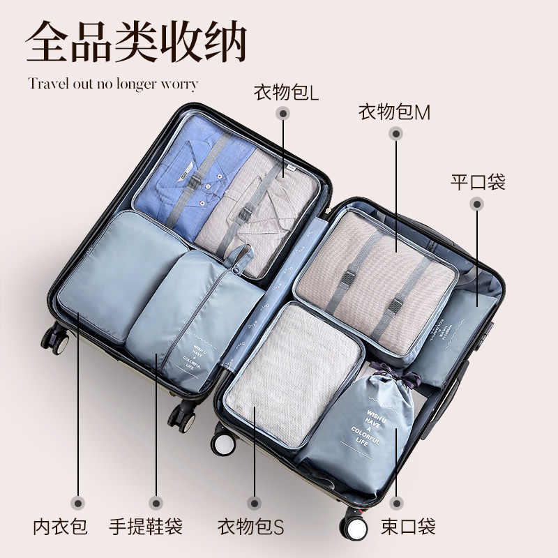 Light gray seven-piece set-thickened waterproof twill (suitable for single long-distance travel) Light blue seven-piece set-thickened waterproof twill (suitable for single long-distance travel) Navy blue seven-piece set-wear-resistant