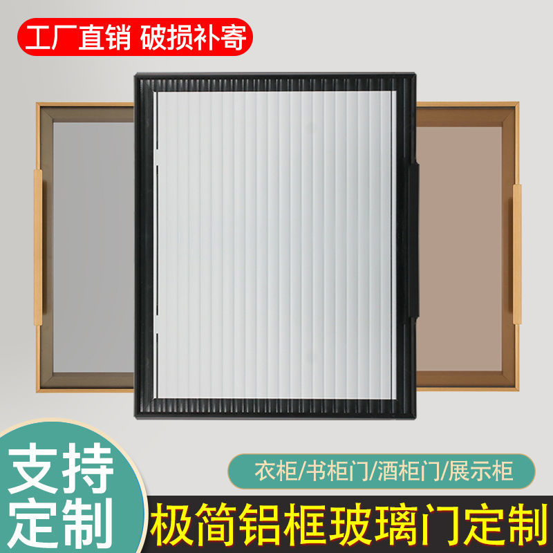 Light extravagant minimalist tempered glass cabinet door set as narrow rim aluminium alloy dining side bookcase door wardrobe wine cabinet door customisation-Taobao