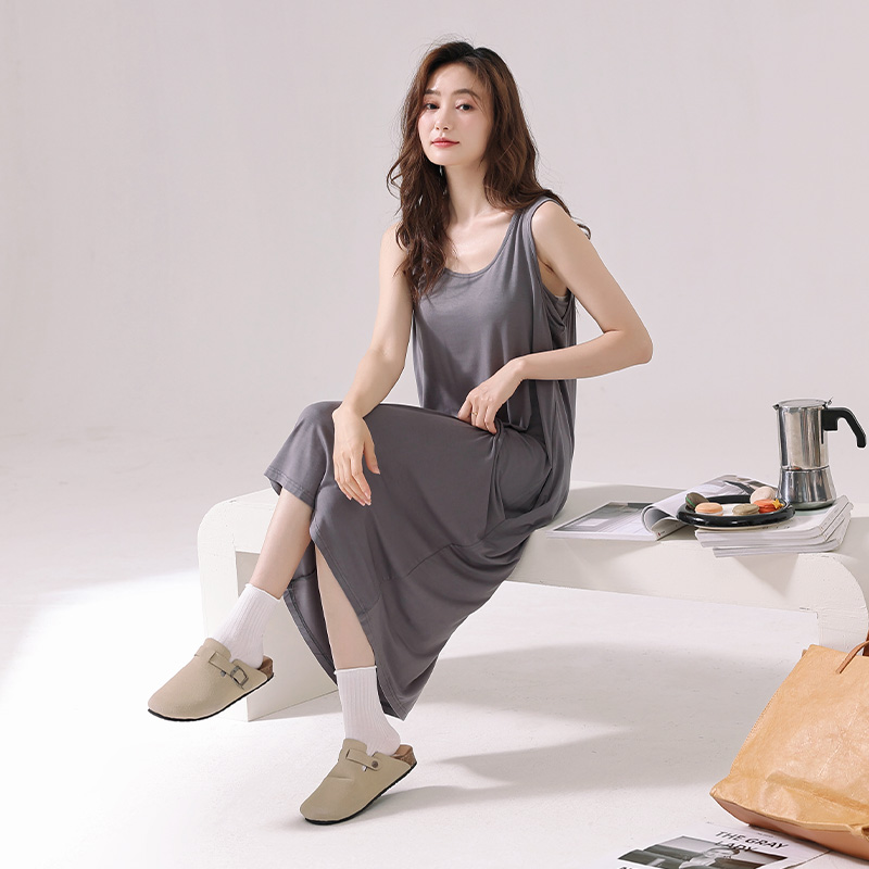 Modale Sleeping Dress Woman's Summer Harness Chest Cushion 2023 New Mid-Length Pajamas Sleeveless Sleeveless Summer Home Dress-Taobao