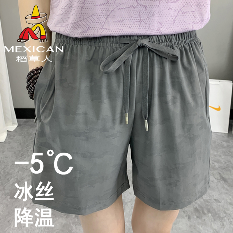 Rice Straw Man 40% Pants Shorts Women Summer Thin stretch Breathable Loose Big Code Running Sports Ice Silk Speed Dry Pants-Taobao