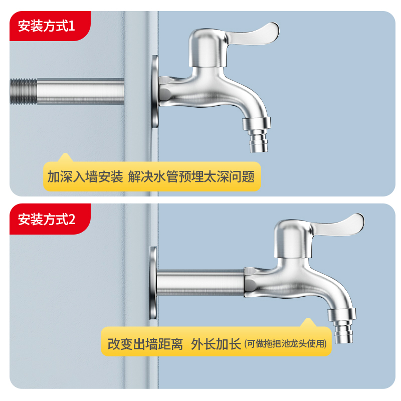 Lengthened mop pool tap 304 stainless steel Home tap water extension Mop Pool Washing Machine Special-Taobao