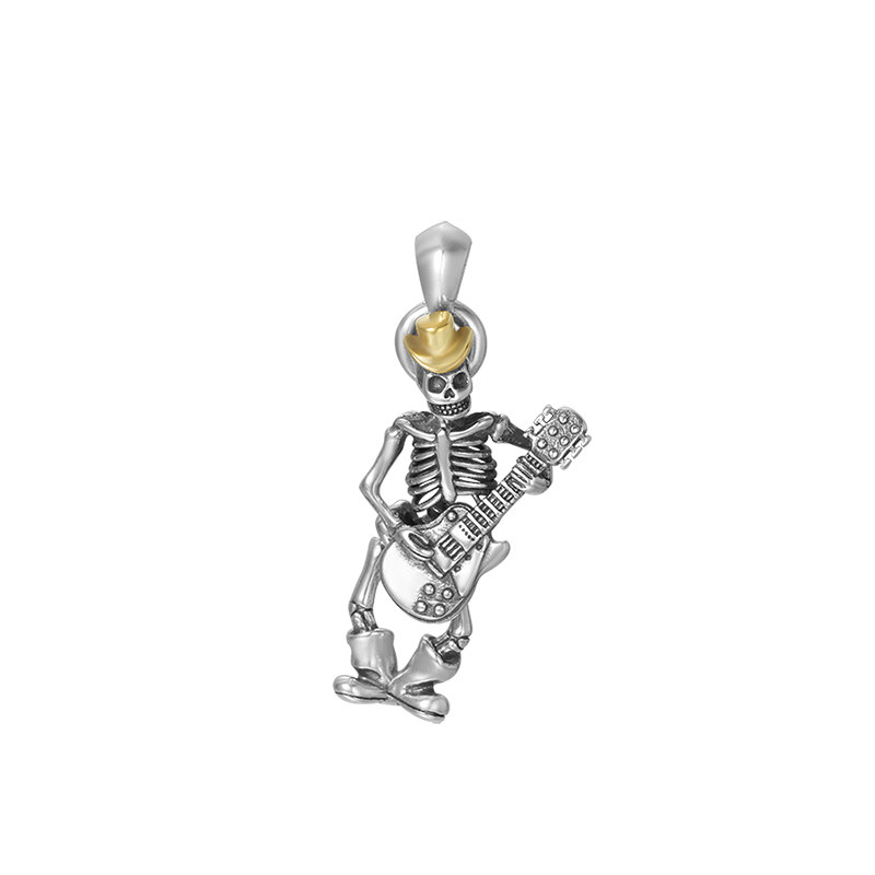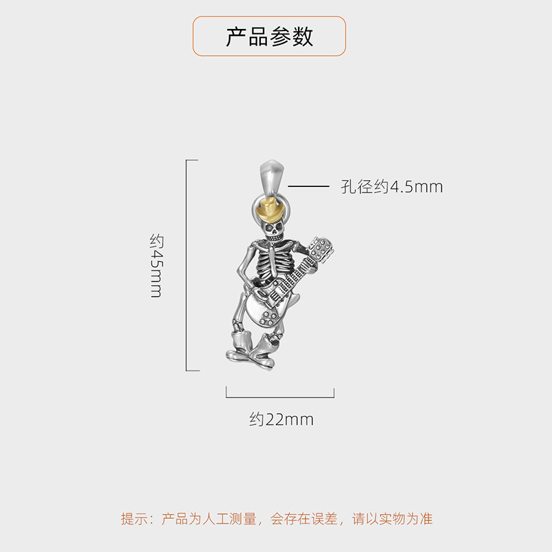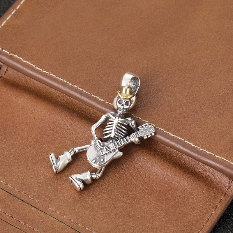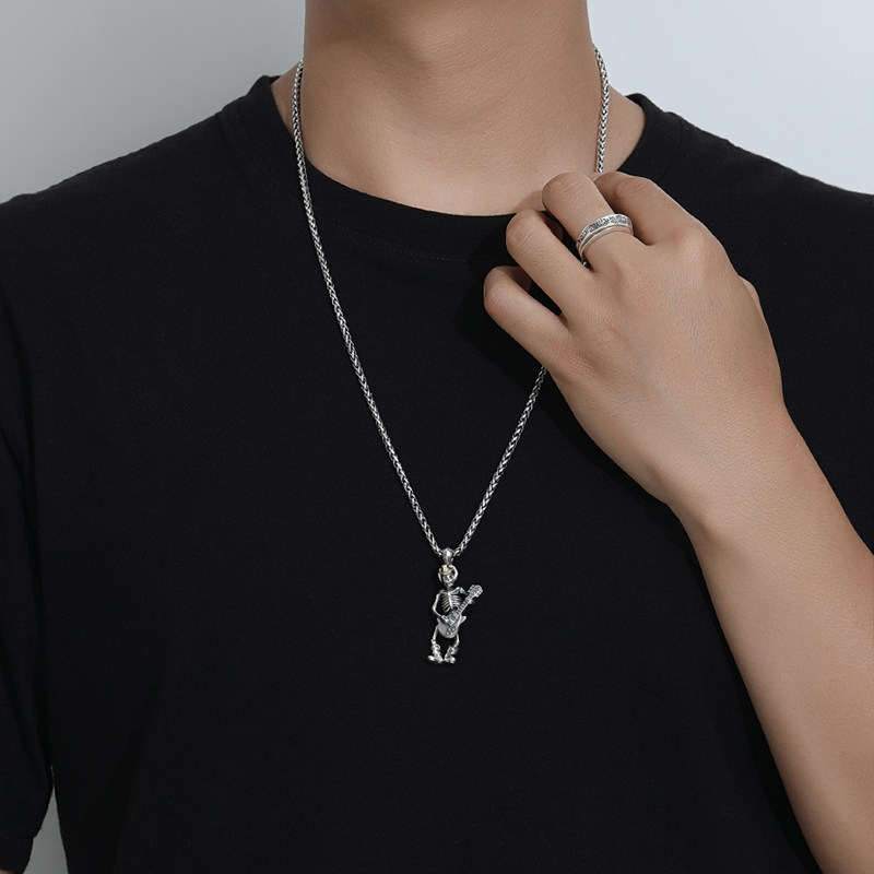 S925 pure silver Skull skull pendant male rock guitarist Hip hip hop man Petty Crowdnecklace Hang Pendant for Dream Ring Tours-Taobao