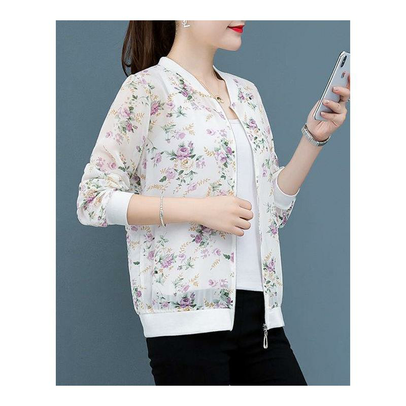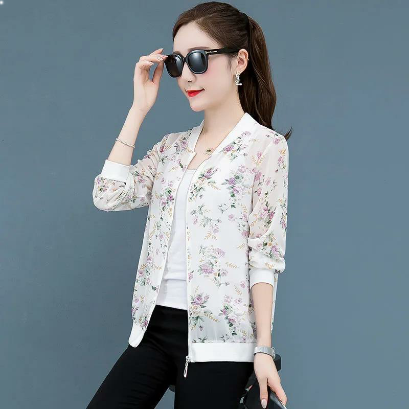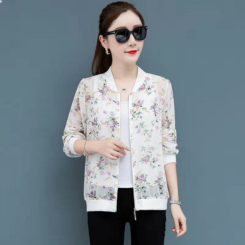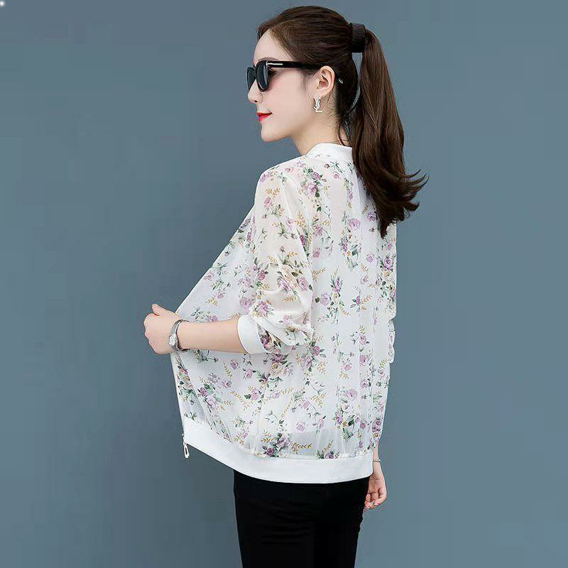 Sunscreen clothing women's summer thin tops 2023 new Korean version of chiffon printed baseball uniform loose large size short coat