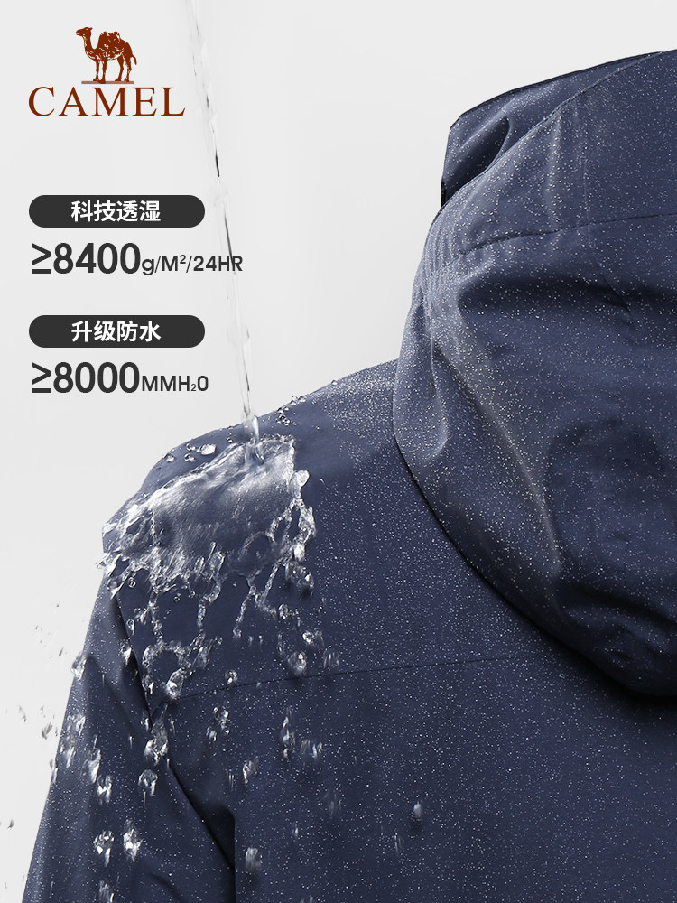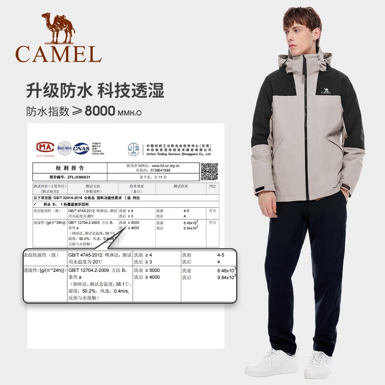 Camel collage submachine clothing male and female three-in-one detachable outdoor camping waterproof windproof climbing jacket for spring and autumn jacket-Taobao