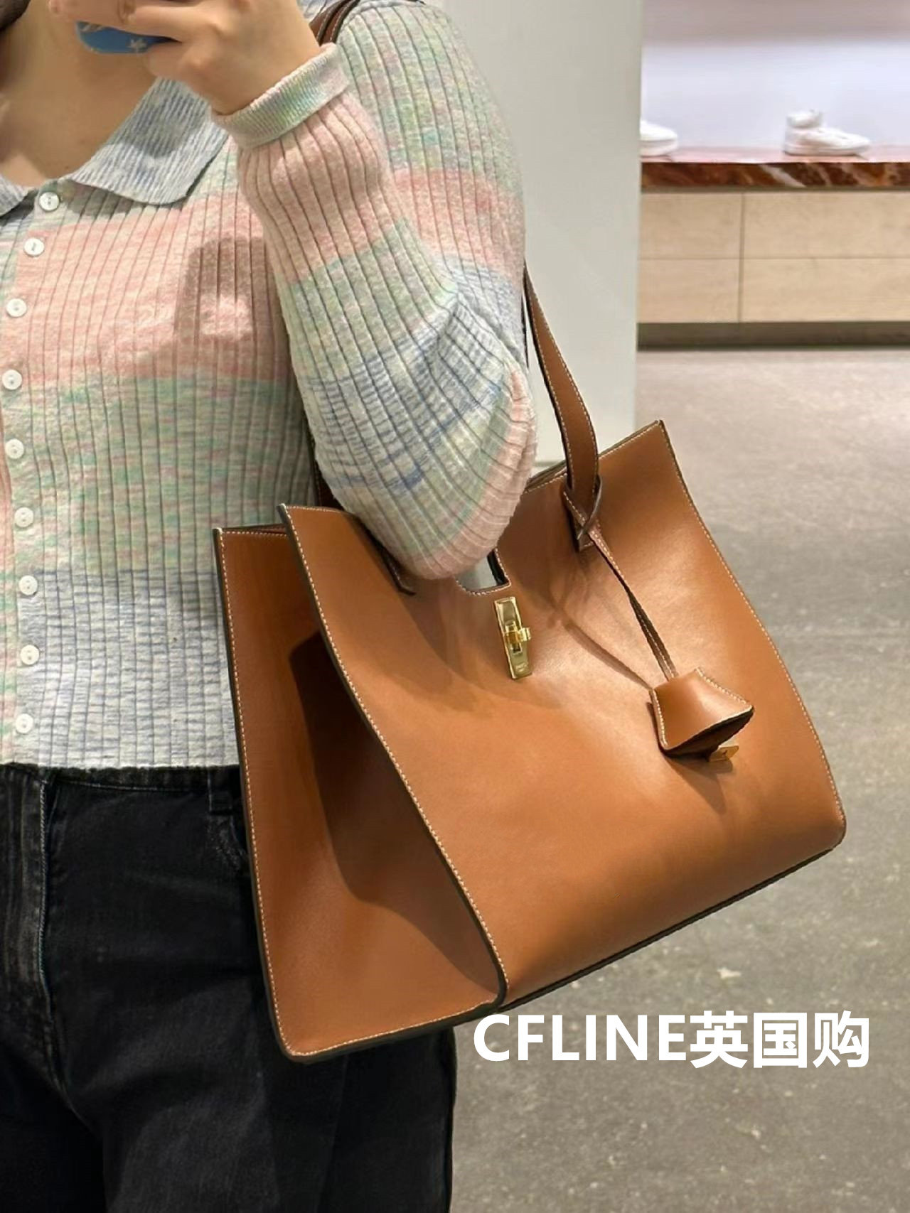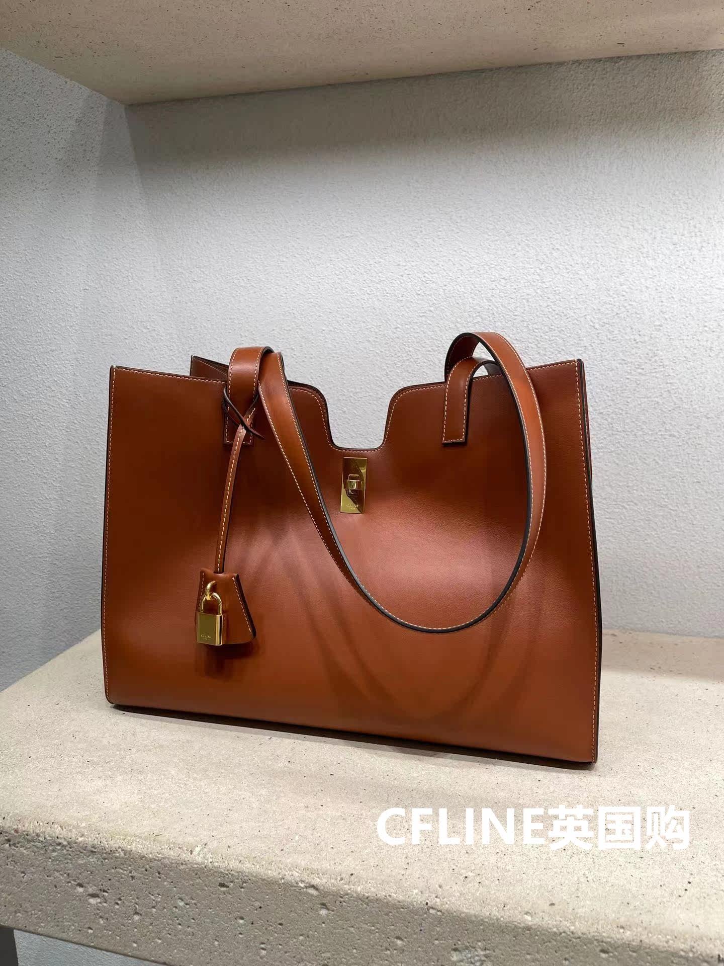 Suitable for CELINE Syrene Cabas 16 Spin Lock Closure Pure Color Smooth Tot Bag Single Shoulder Carry-on Handbag-Taobao
