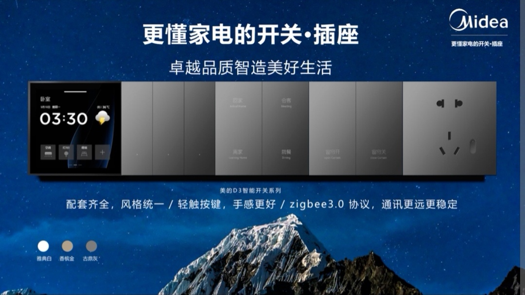 Beauty Three-way Smart Light Switch Panel D3ZDK-3 Grey D3 Series with Smart Gateway Meiju APP-Taobao