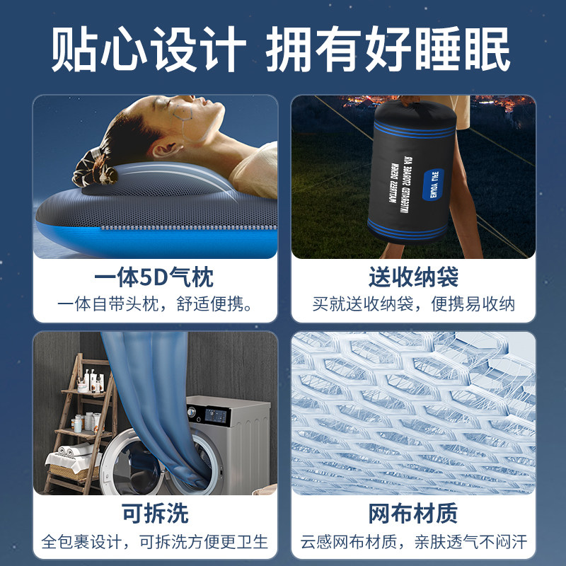 Home Inflatable Mattress Indoor Single Double Air Cushion Beds Ground Palate Thickened Outdoor Camping Moisture Sleeping Mat-Taobao