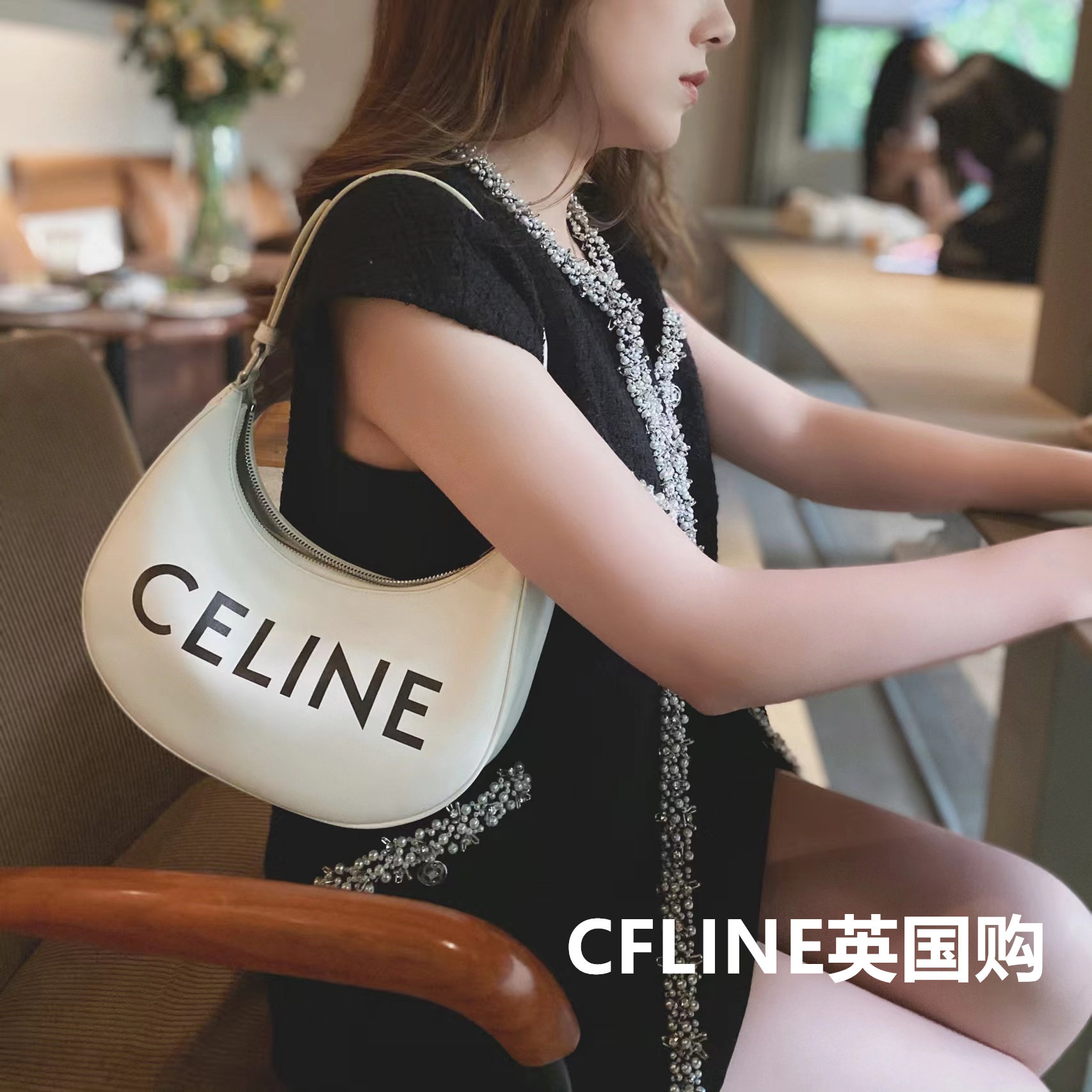 Suitable for CELINE Syrene AVA letters Grand LOGO printed smooth cow leather handbag Shoulder Bag Armband-Taobao