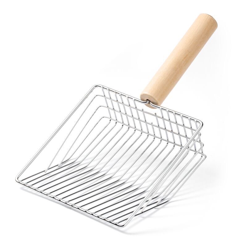 Metal cat litter shovel fine hole stainless steel tofu bentonite large small particles wooden handle electroplating cat litter shovel feces artifact
