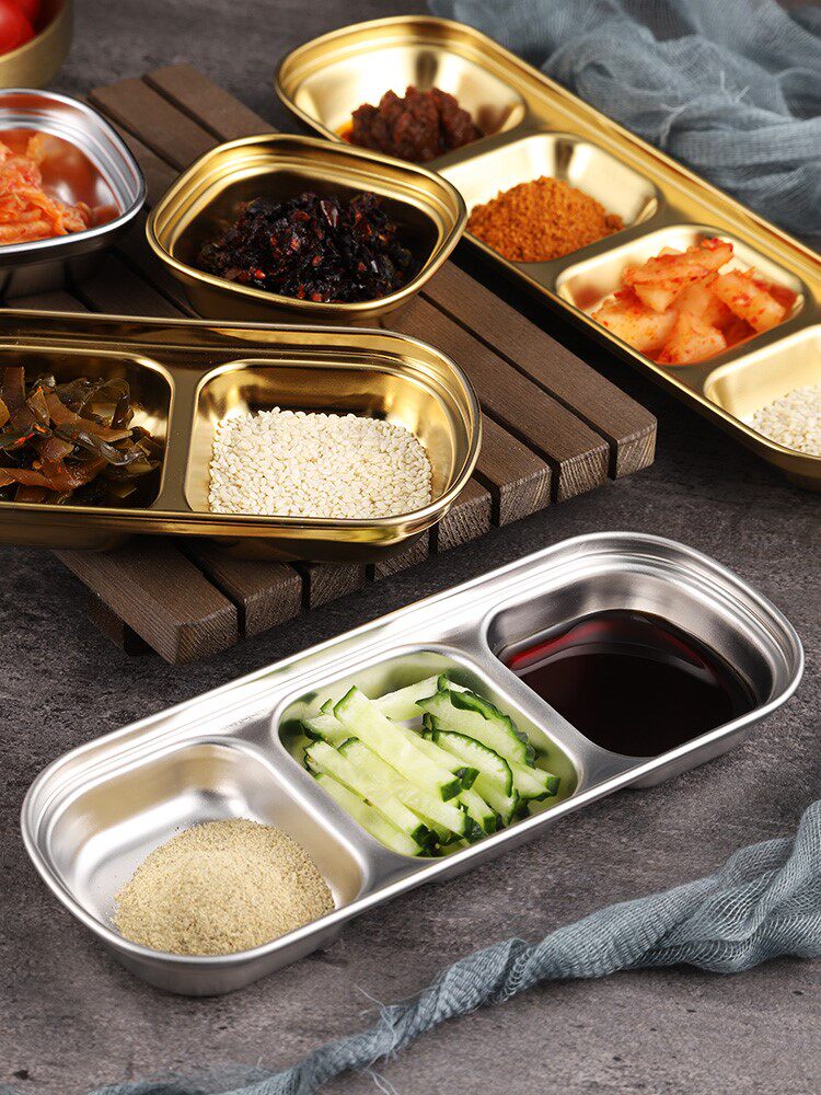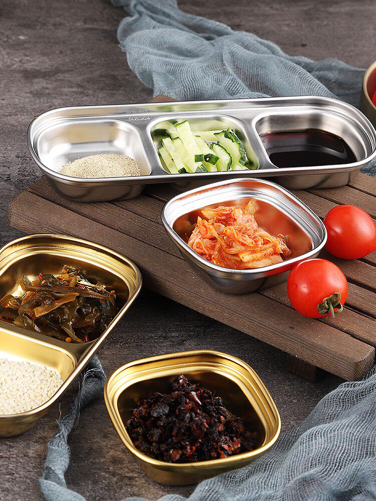 304 stainless steel Korean-style dish gold dipping saucer Hot Pot seasoning Saucer Dish Grilled Cutlery Cutlery Two Gg-Taobao