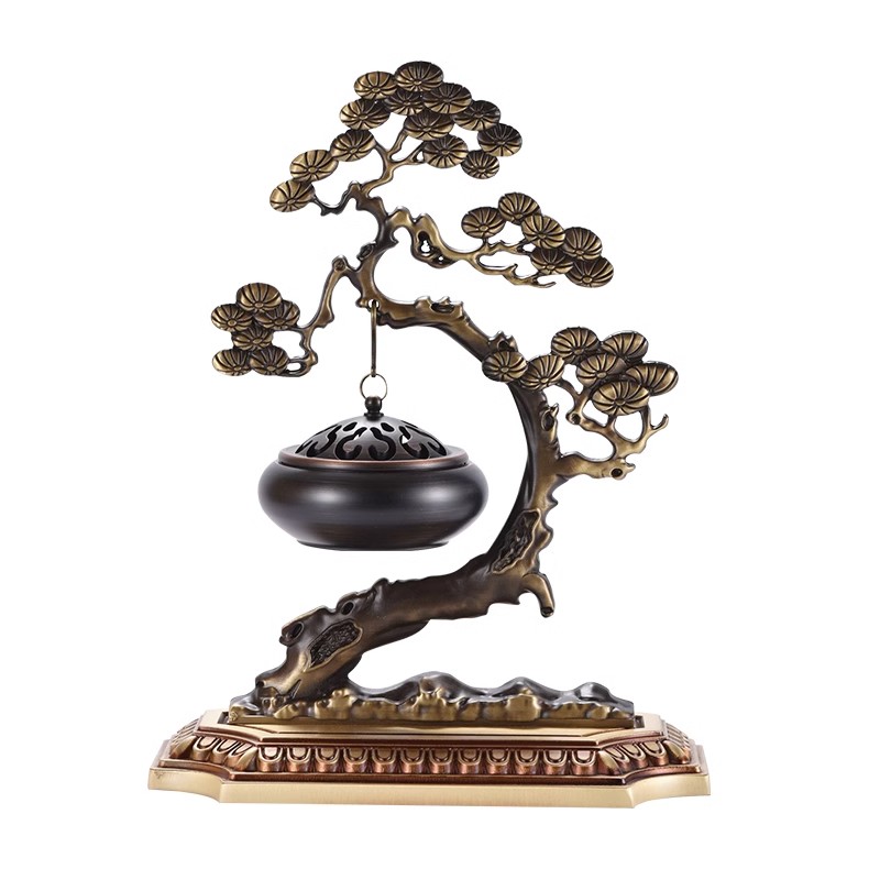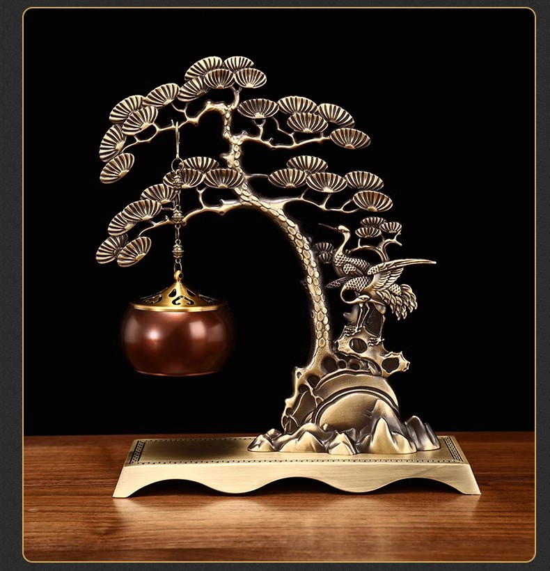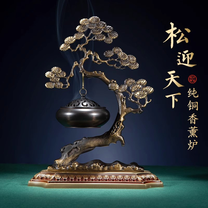 Pure Copper Greet Pines Pine Tree Incense Stove Pine Plan One (Old Mountain Sandalwood) Gift-recommended pine crane Yanan annuity furnace Haina Baichuan (music incense stove)