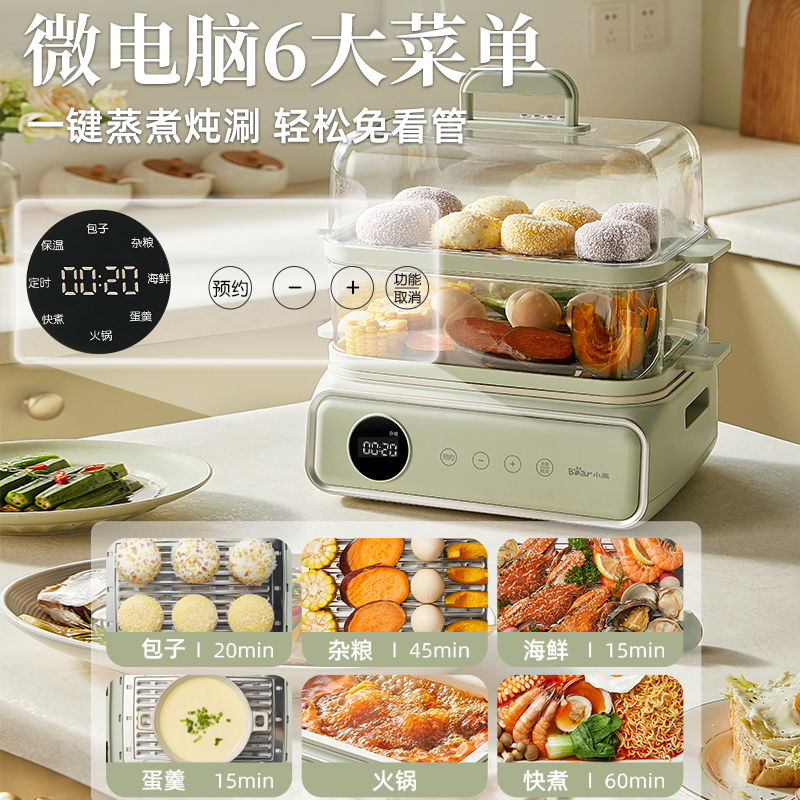 Small Bear Electric Steamer Multifunction Home Three-layer Stainless Steel Steam Box Small Multilayer Electric Steam Cage Cooking Saucepan Pan-Taobao