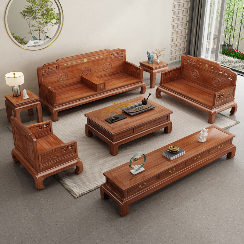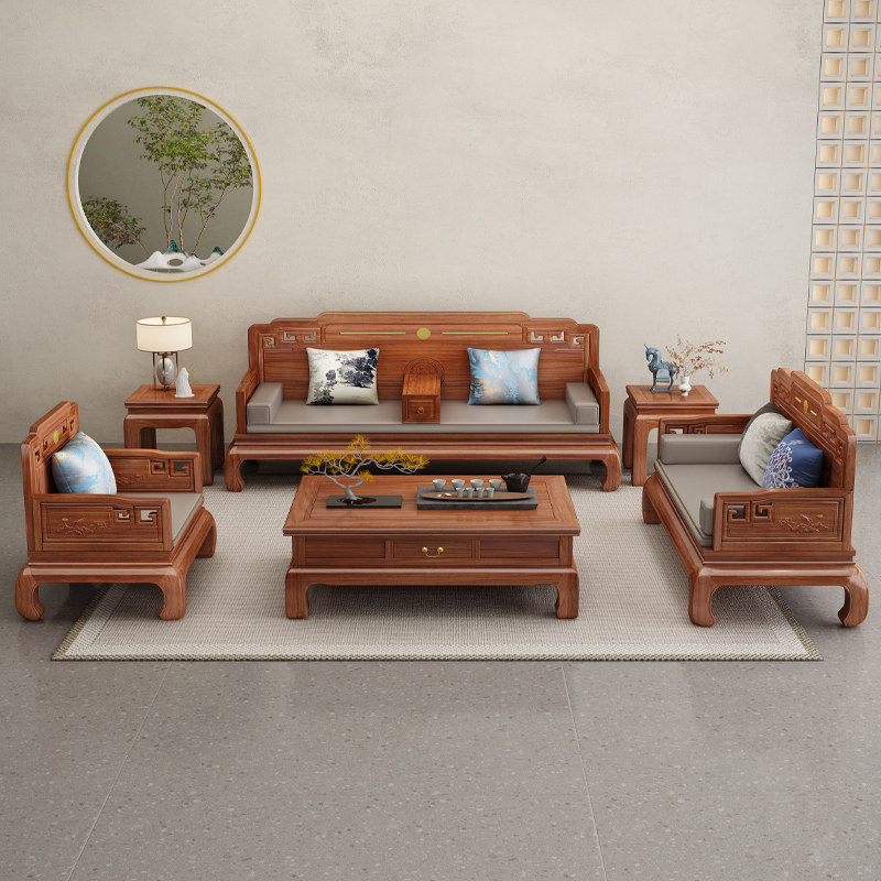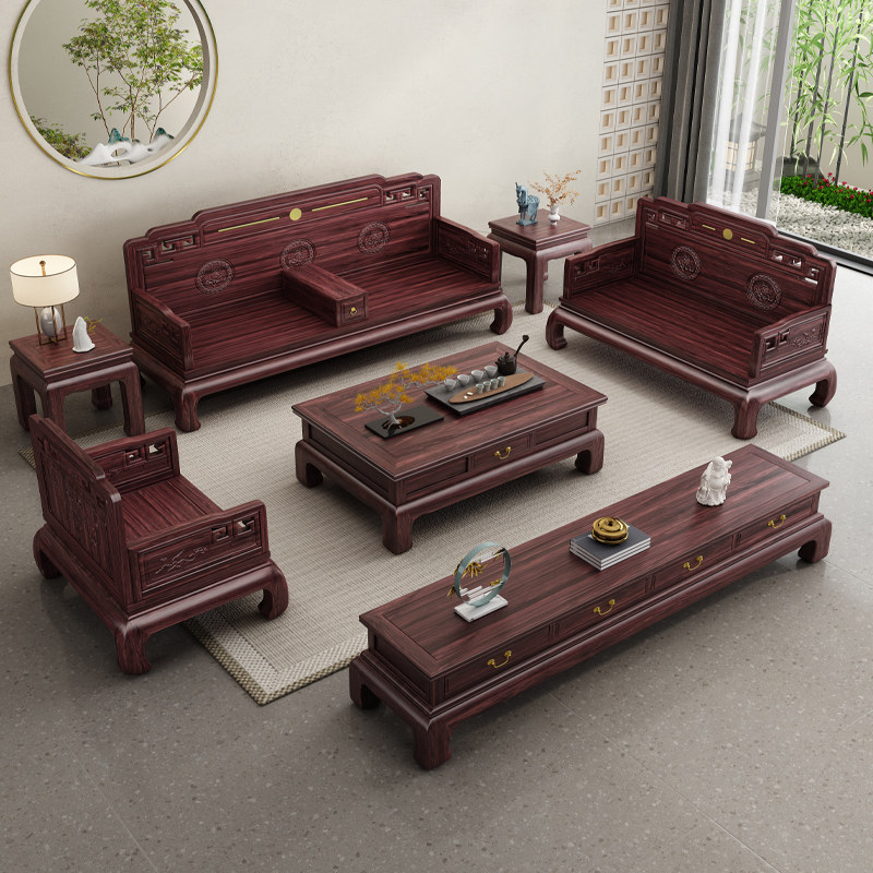 New Chinese style solid wood sofa golden rosewood high-end classical simple winter and summer dual-use large and small living room furniture