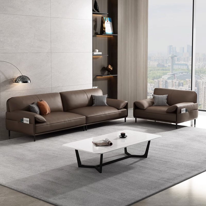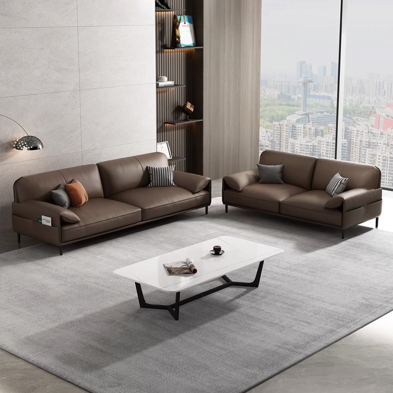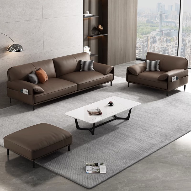Office Sofa Tea Table Combo Suit Brief Modern Getaway Guest Business Reception Light Lavish Genuine Leather Trio Bit-Taobao