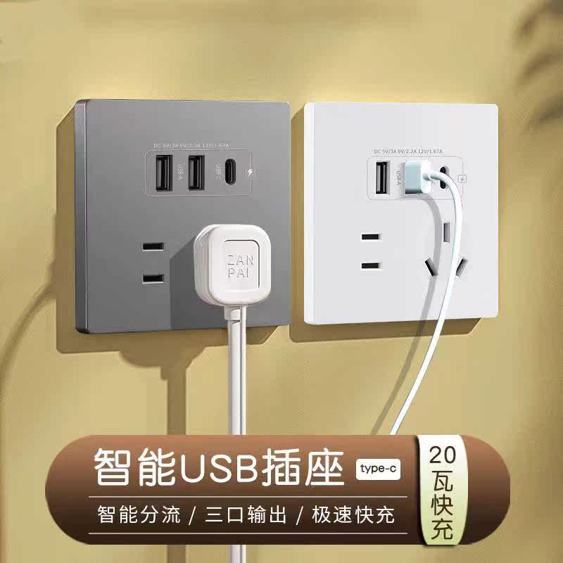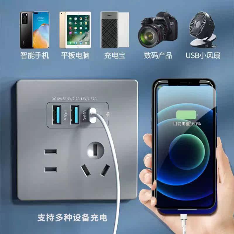 International Electrician 86 Type 20W Fast Charge USB Socket Switch Panel Wall Home Mobile Phone Charging Type-c Five-hole
