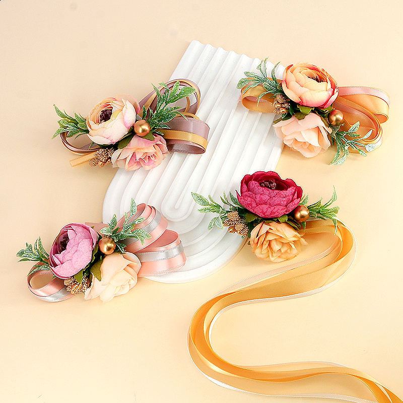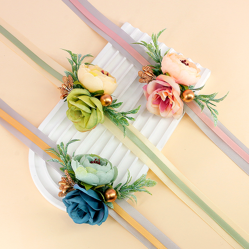 Senteal Wrist Flower Bridal Bridesmaid's Hand Flowers Sisters Group Little Fresher Knot Wedding Dance Super Fairy Emulation Floral Bracelet-Taobao