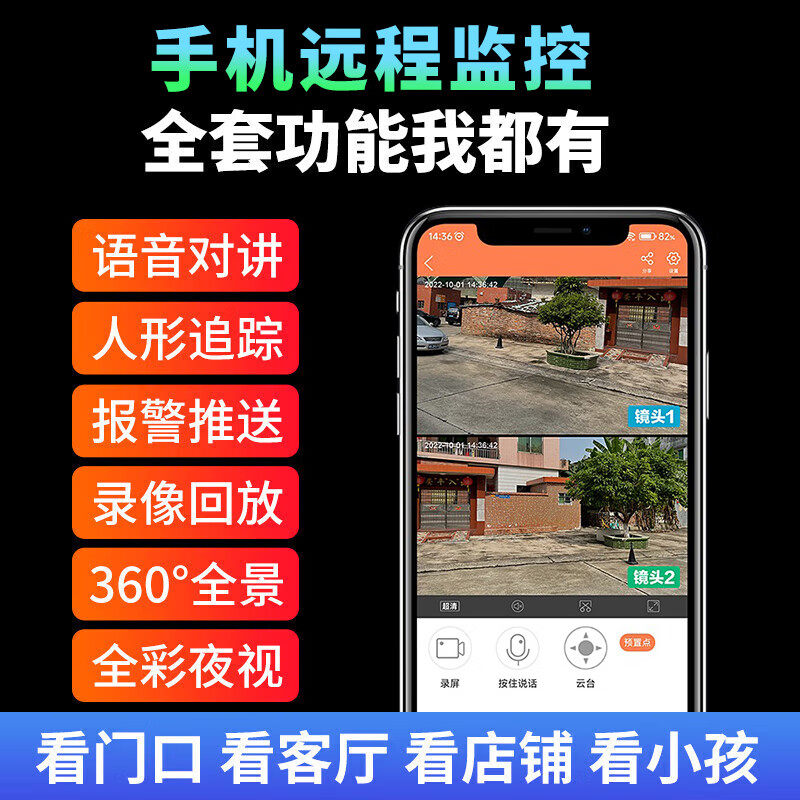 Camera surveillance Home Mobile Phone Remote Wireless Monitor Outdoor Smart Night Vision High-definition Doorway 4G Outdoor Waterproof 360 Degrees Panoramic No Dead Angle Photography Head Voice Talkback 1960-Taoba