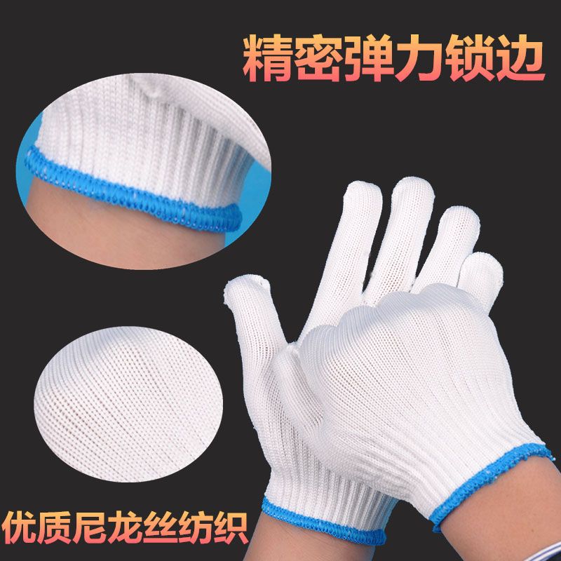 Labor insurance nylon gloves wear-resistant line gloves thickened protective auto repair men and women construction site work white gloves