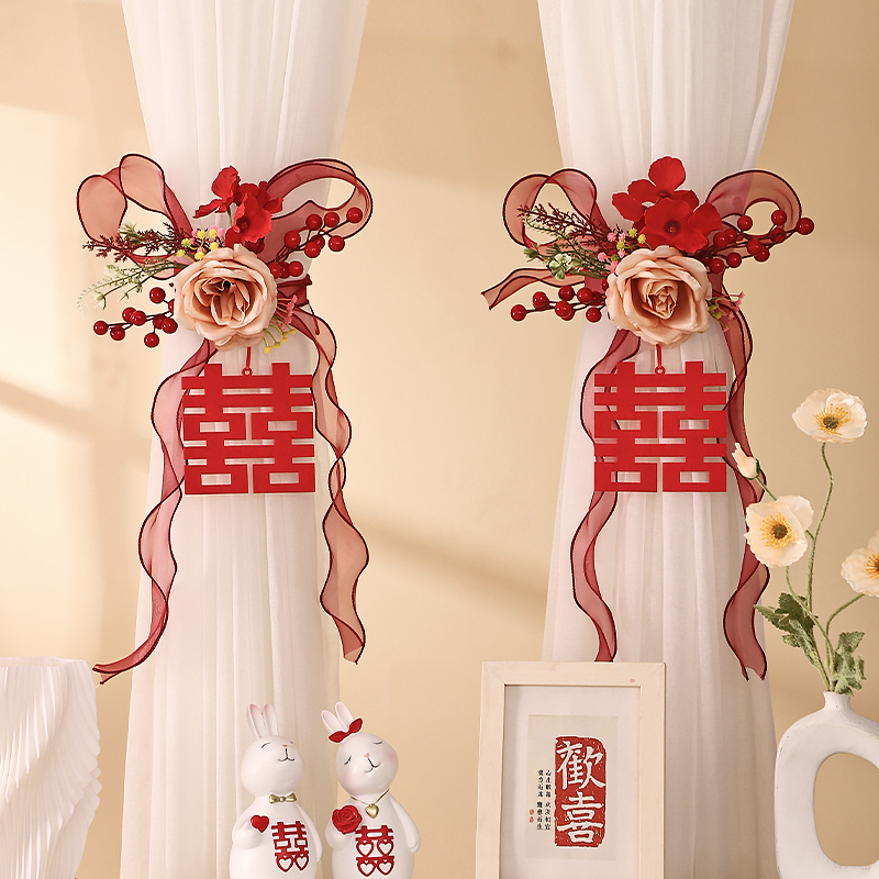 Wedding House Arrangement Wedding Curtains Strap Rooms Décor Rooms Decoration New Room Happy Words Hanging Decoration Laflower Men's Square Bedroom Living Room-Taobao
