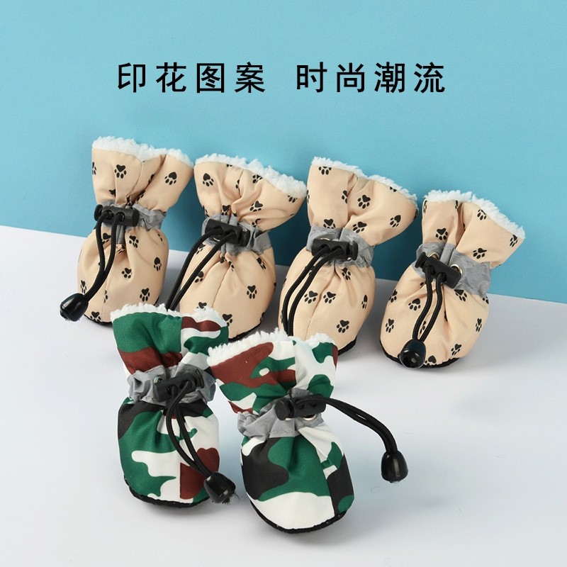 Dog winter shoes small dogs waterproof and anti-drop Teddy Pomeranian winter non-drop plus velvet soft-soled puppies special shoes