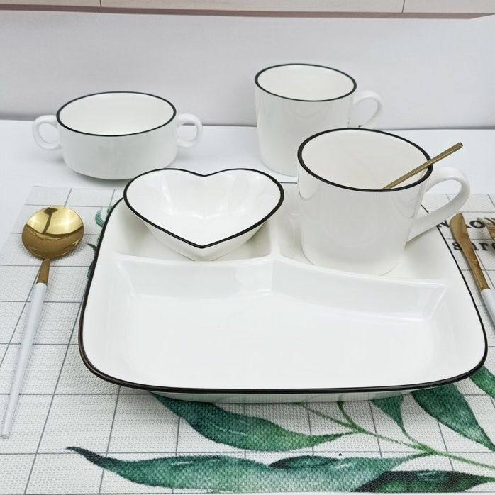 Double ear bowl breakfast cup 9-inch rectangular plate 9-inch black line square corner plate 10-inch square plate 9-inch round 3-grid plate 10-inch square 3-grid plate 12-inch square 4-grid plate 9 inches