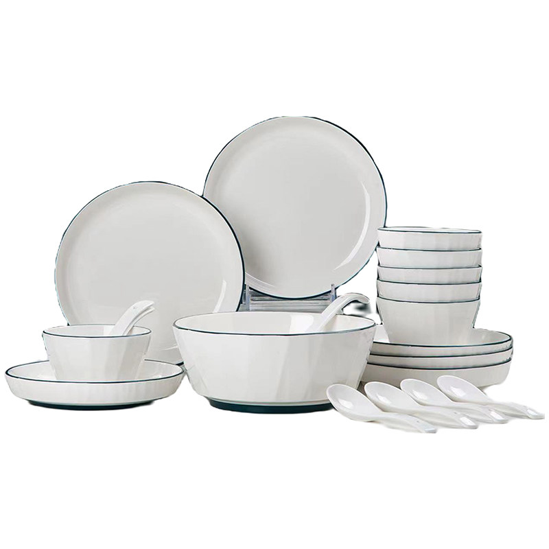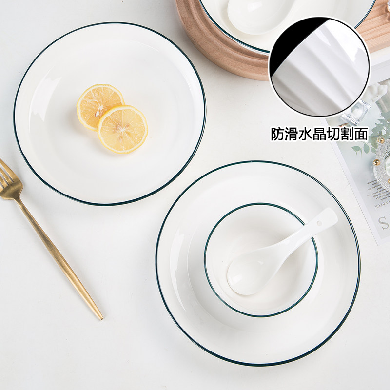 Dishes and dishes set home Japanese green crystal ceramic tableware high-value set a complete set of rice bowls and plates