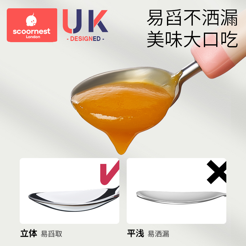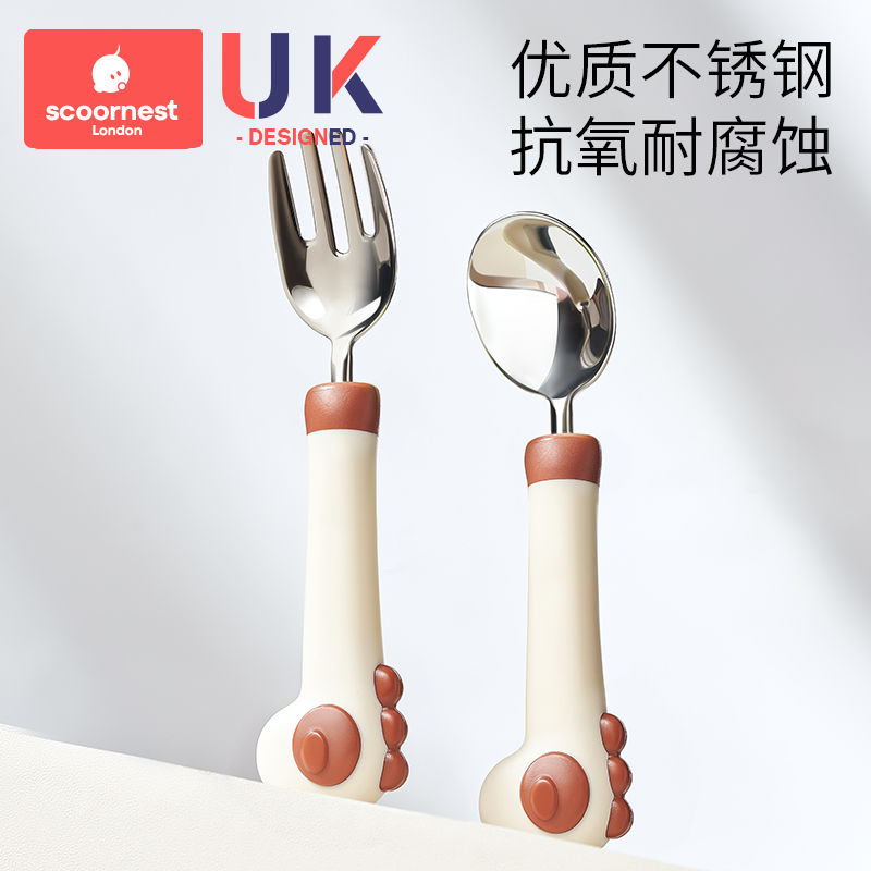 Konest Baby Spoon Children Cutlery Training Spoon Fork Autonomic Fed Rice Spoon Eat Baby Stainless Steel Fork Spoon-Taobao