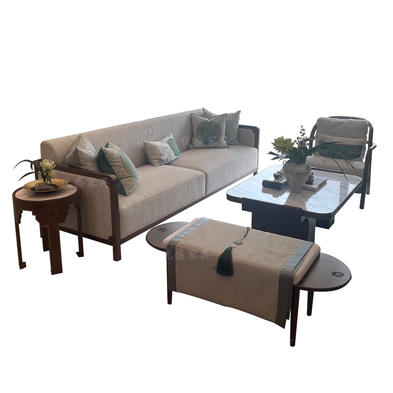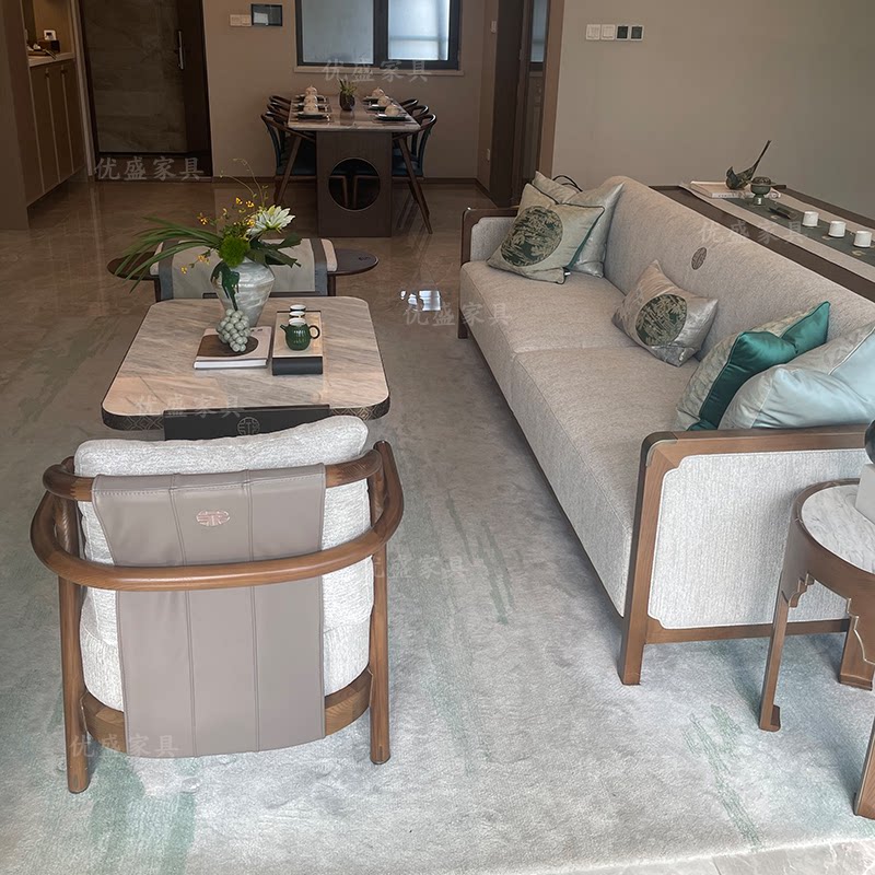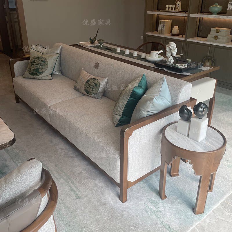 Three-person sofa (ash wood) tea table (ash wood) single chair (ash wood) bench (ash wood) round table (ash wood) TV cabinet (ash wood) three people coffee table single chair bench round