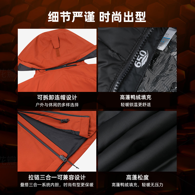 Columnia Colombia male and female silver dots 650 fluffy duck suede liner three-in-one waterproof submachine WE1157-Taobao