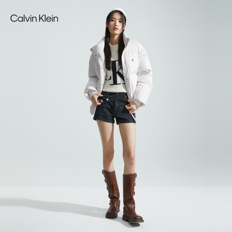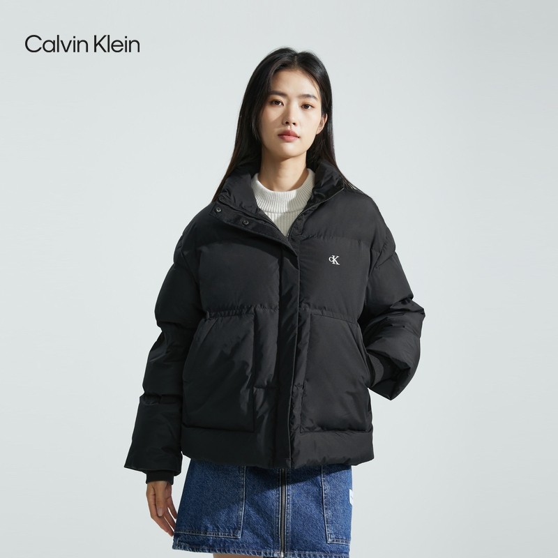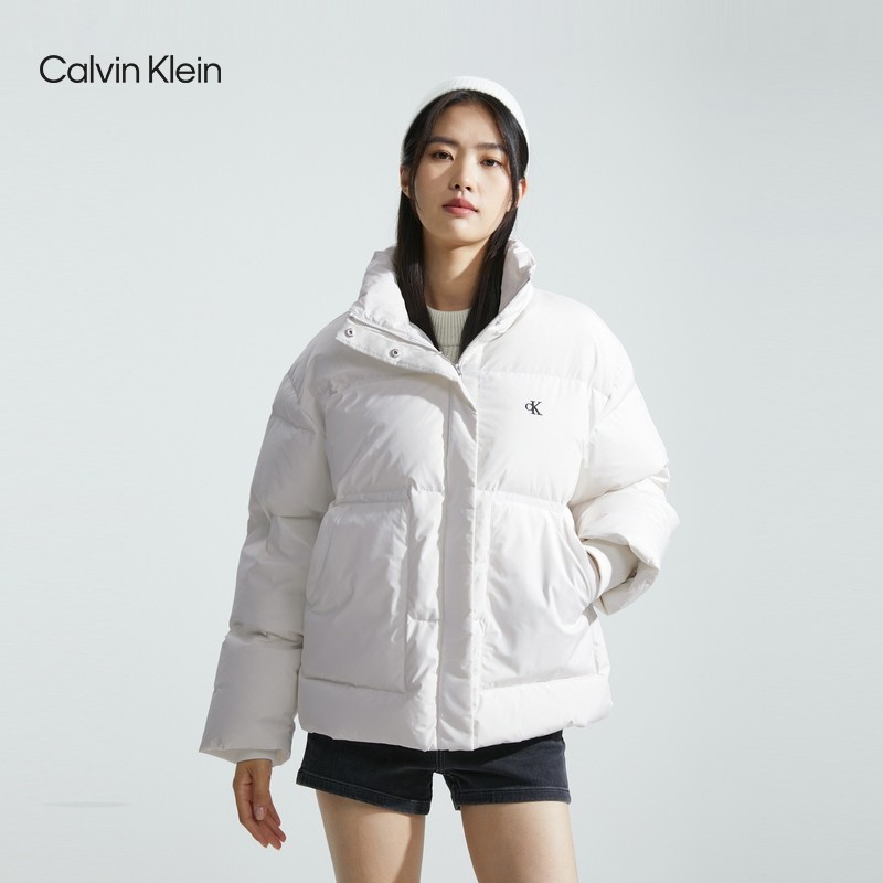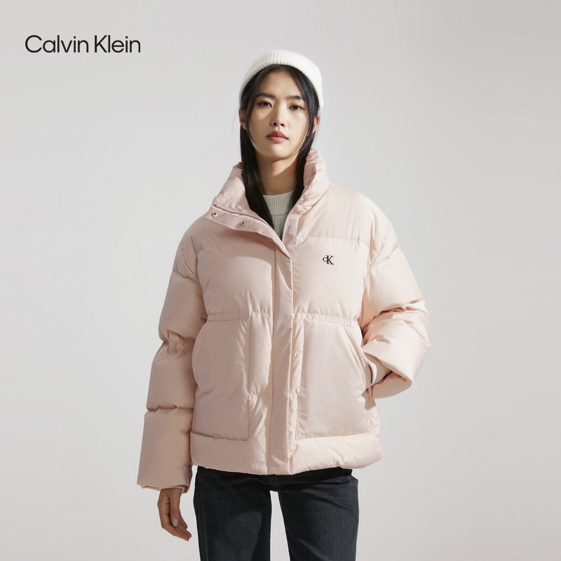 CK Jeans23 Autumn Winter New Lady Brief Embroidered Letter Upright Duck Suede Quilted Down Jacket J221163-Taobao