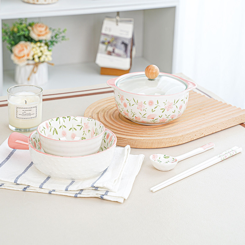 Ten miles of peach blossom-instant noodle bowl handle bowl rice bowl spoon chopsticks ten miles of peach blossom-instant noodle bowl spoon chopsticks ten miles of peach blossom-handle bowl rice bowl spoon ten miles of peach blossom-handle bowl spoon ten miles