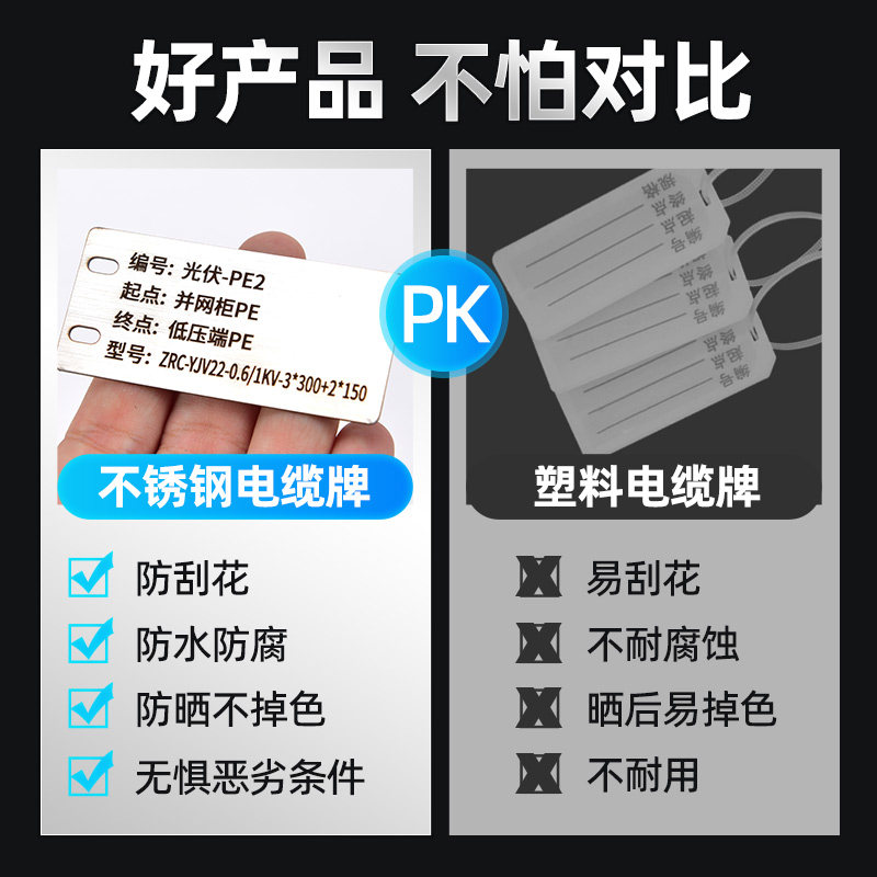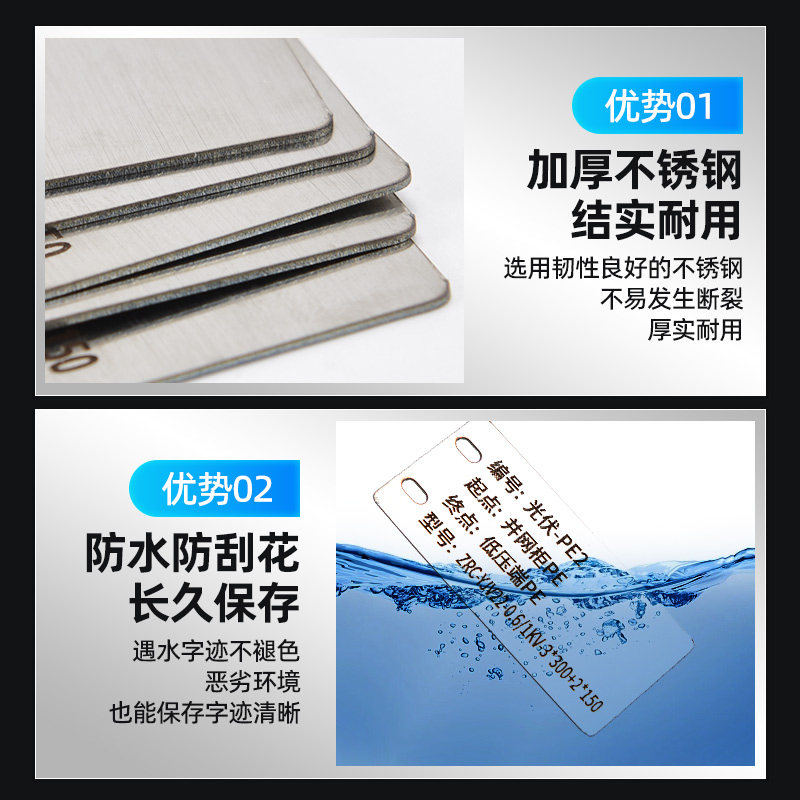 304 316L stainless steel cable ID card fixed as metal lettering number Line number nameplate valve mark hanger fixed as mobile Unicom telecom PVC cable optical cable towards signage-Taob