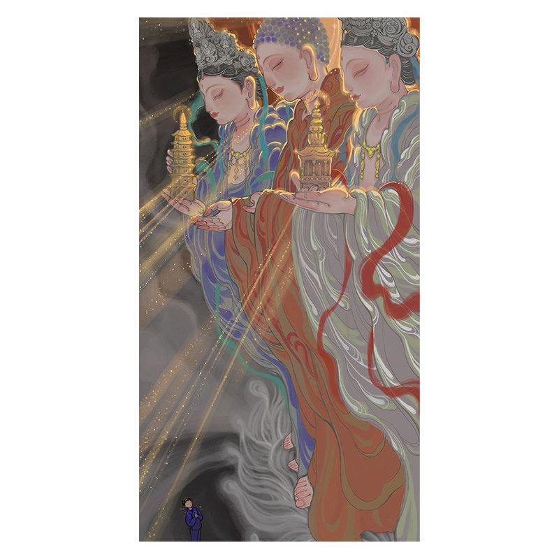 Sign-in-picture delivery picture frame Grand Seals "Hua Yan Three Saints" limited edition Painting Hang Painting-Taobao