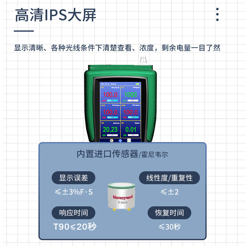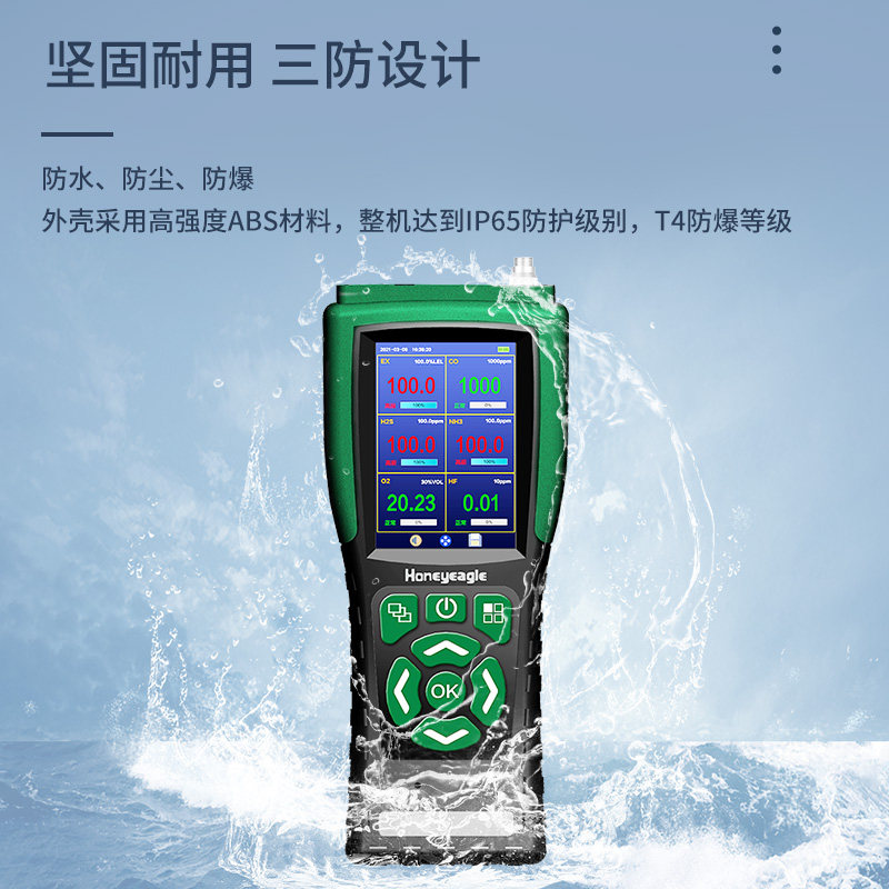 Combustible gas 0-100 %LEL hydrogen sulfide 0-100ppm carbon 0-500ppm 0-500ppm carbon dioxide 0-5000ppm oxygen 0-30 %VOL ammonia