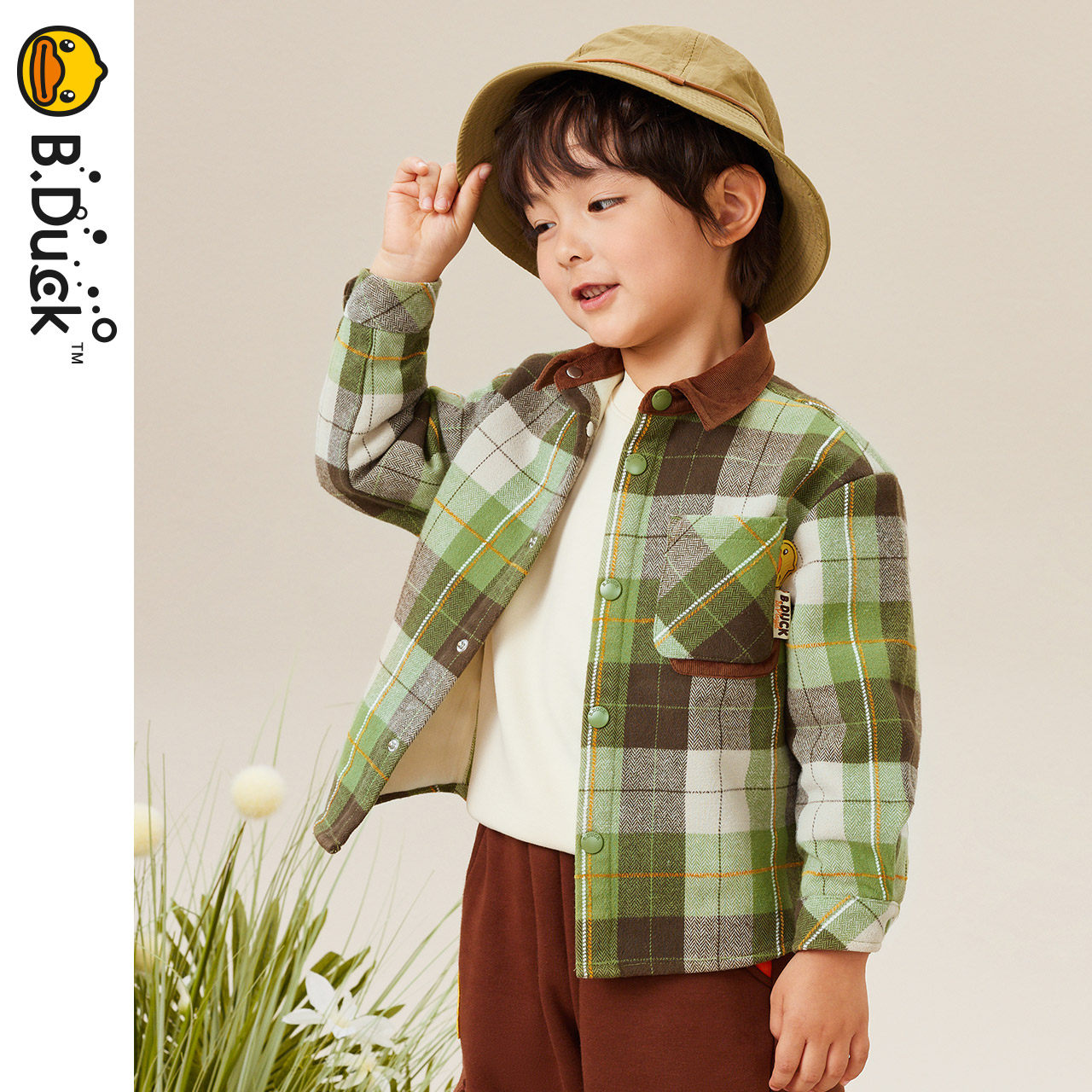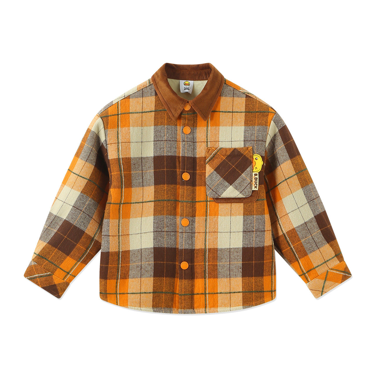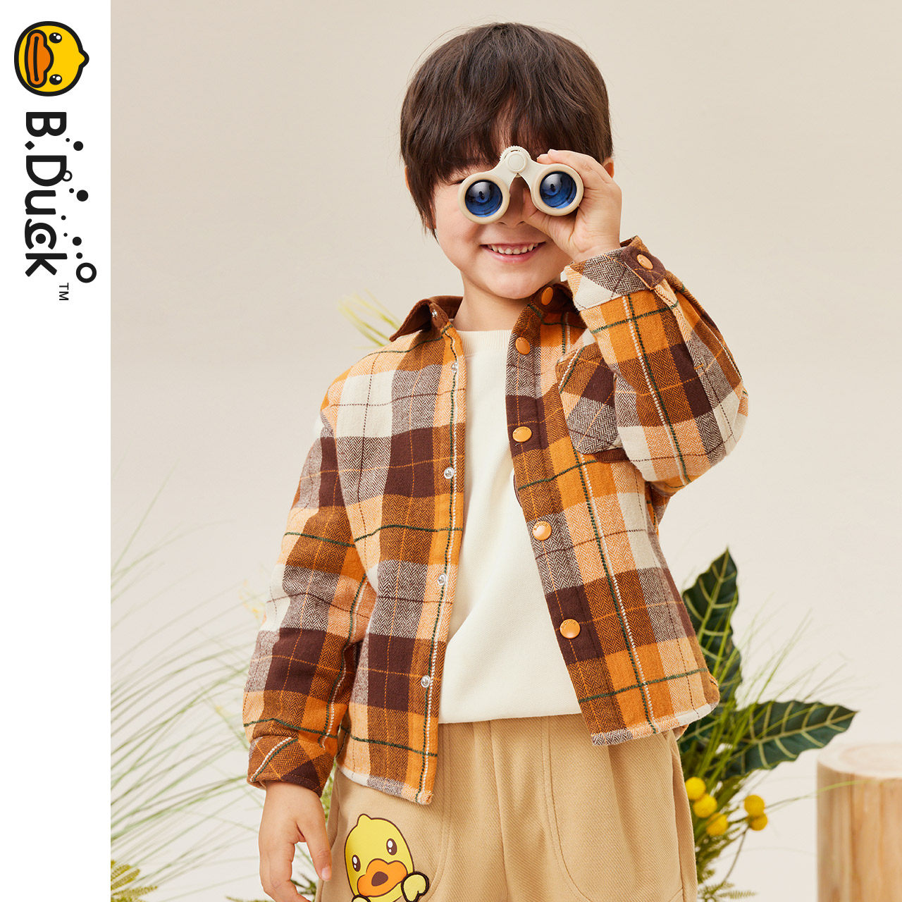 (gush) bduck small yellow duck boy fitted boy shirt children long sleeve shirt plaid jacket outside wearing autumn and winter-Taobao