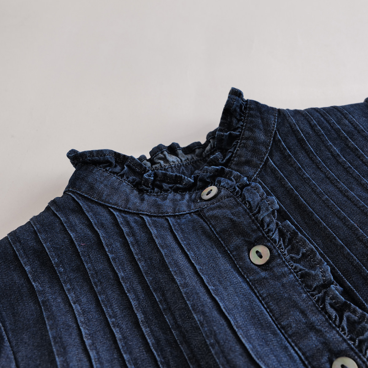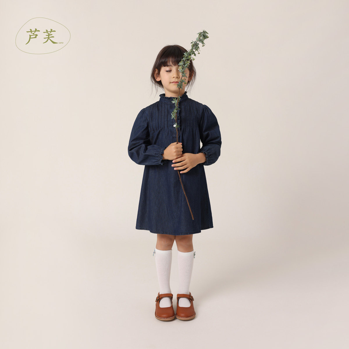 () (Mark Jenny ruffl) 2023 Autumn loaded girls with bubble sleeves pure cotton denim dress-Taobao