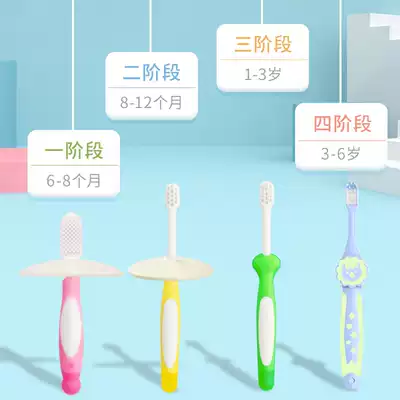 Stage 1 6-8 months (Pink) Stage 2 8-12 months(yellow) Stage 3 1 year old-3 years old(green yellow) Children's toothbrush 3 years old-6 years old(Sky blue)