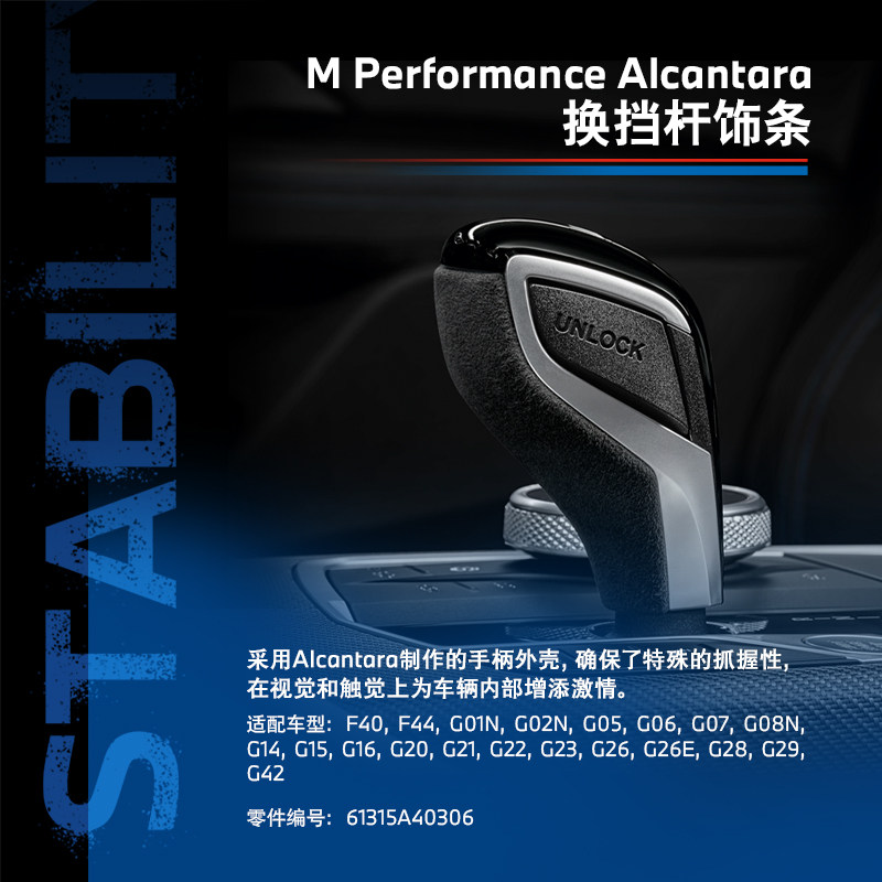 Alcántara Gear Shift Rod Trim (61315A40306) Carbon fiber gear shift rod trim strip (61315A40305) BMW perfor