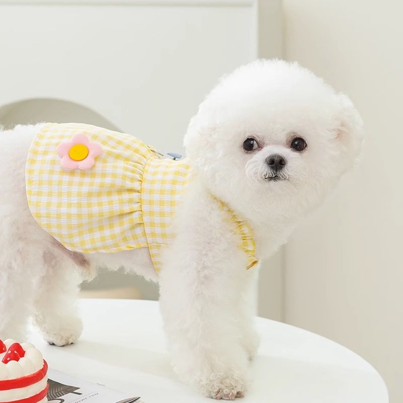 Pet Pooch Love Plaid Pendant Strap Dresses Tracable Bibear Teddy Boomey Mini Dog Spring Summer Thin-Taobao