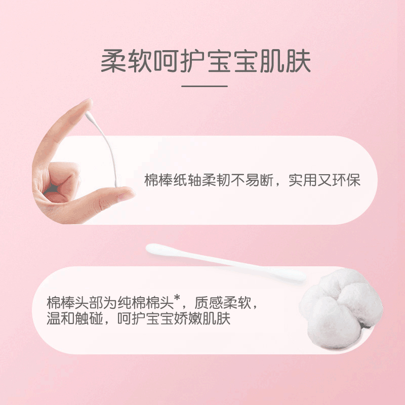 Baby fine shaft cotton swab Newborn ear and nose cleaning cotton swab 180 KA01 (Bei Pro official flagship store)