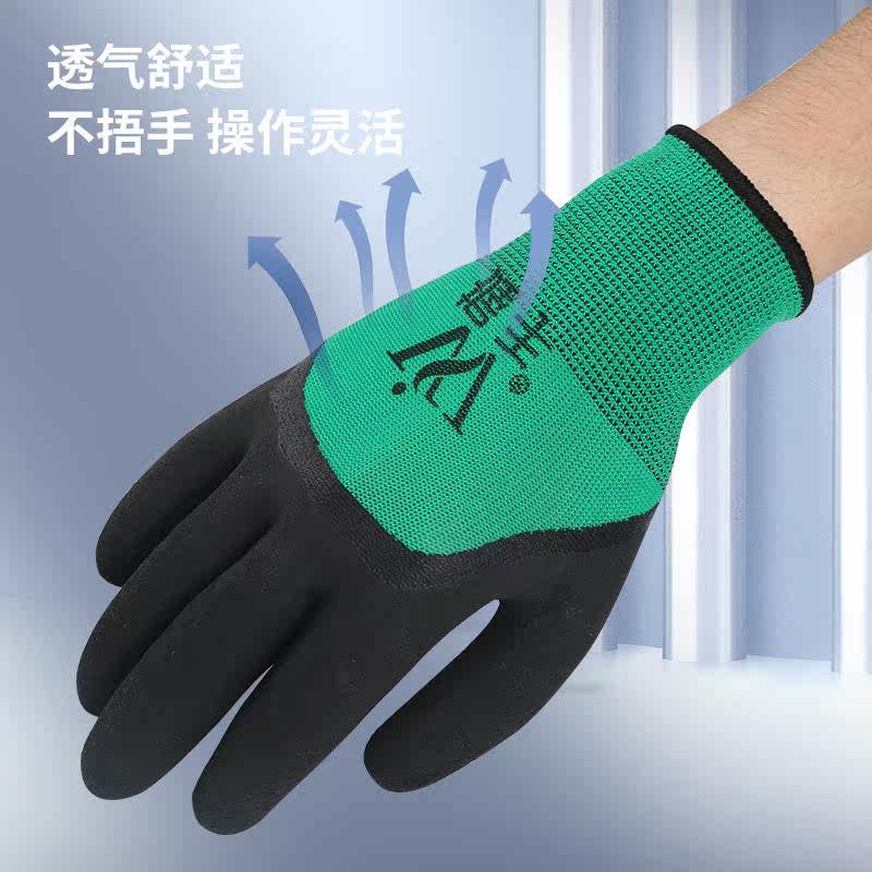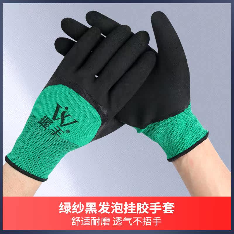 Labor insurance gloves wear-resistant foam breathable sweat-absorbent latex hanging rubber dipped gloves industrial work non-slip gloves