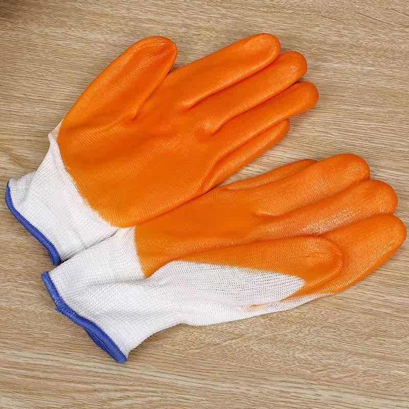 White gauze PVC yellow rubber gloves flat hanging full hanging orange yarn full hanging rubber tendon labor protection gloves two yuan shop