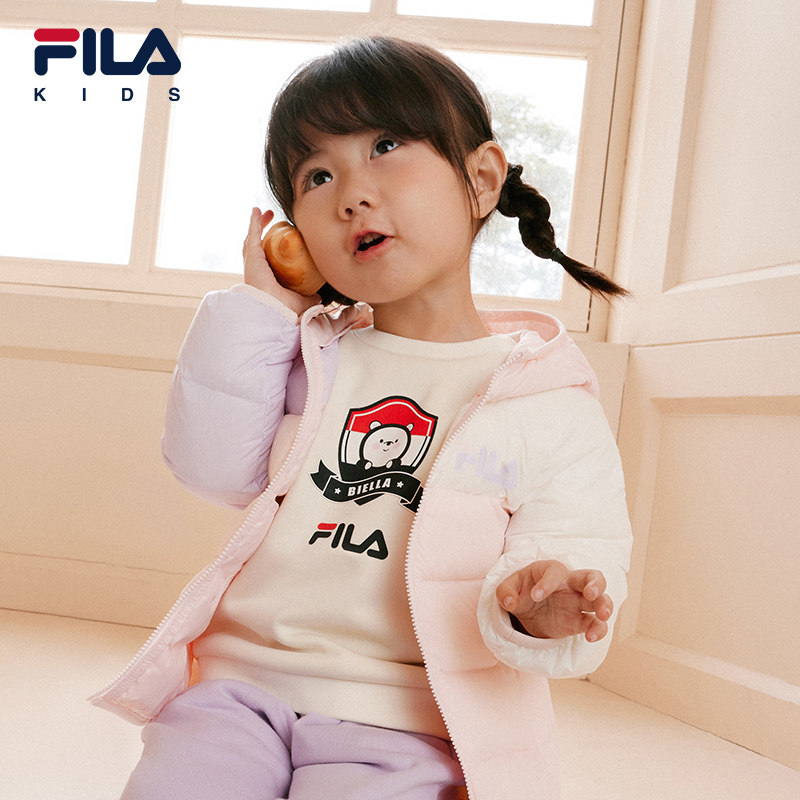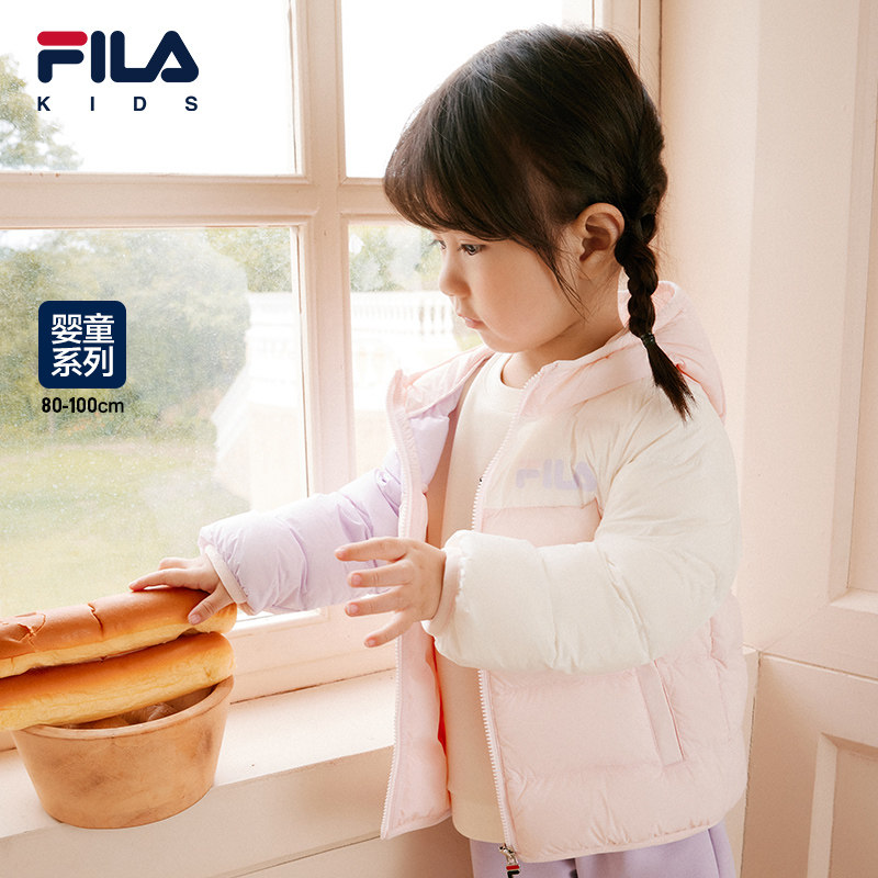 FILA File children's children clothing down clothes 2023 autumn and winter new baby toddler men and women with cap warm coat wave-Taobao