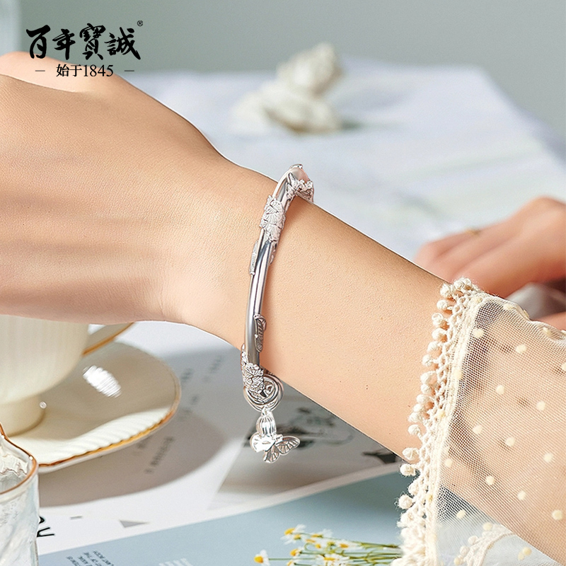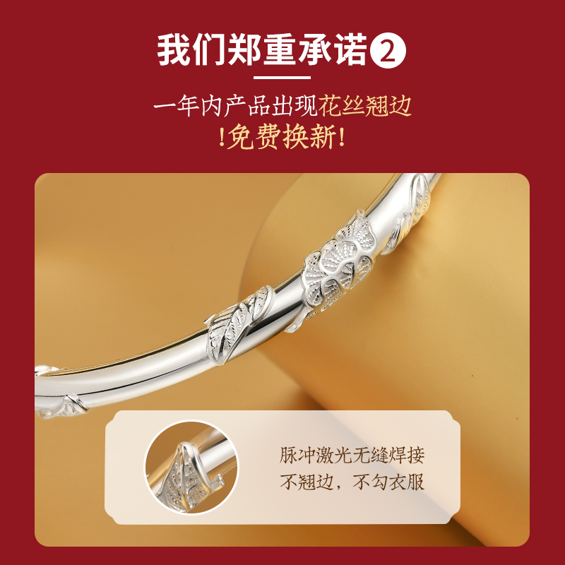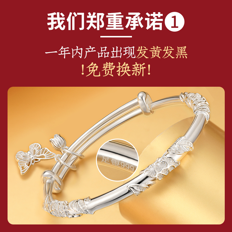 Complex flower specie silver bracelet female pure silver silver 999 foot silver bracelet with pure silver bracelet silver bracelet for sending girlfriend gift-Taobao