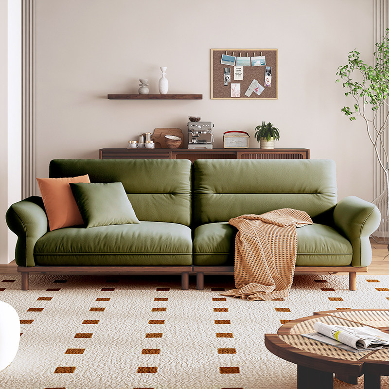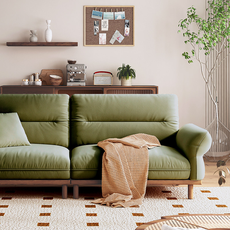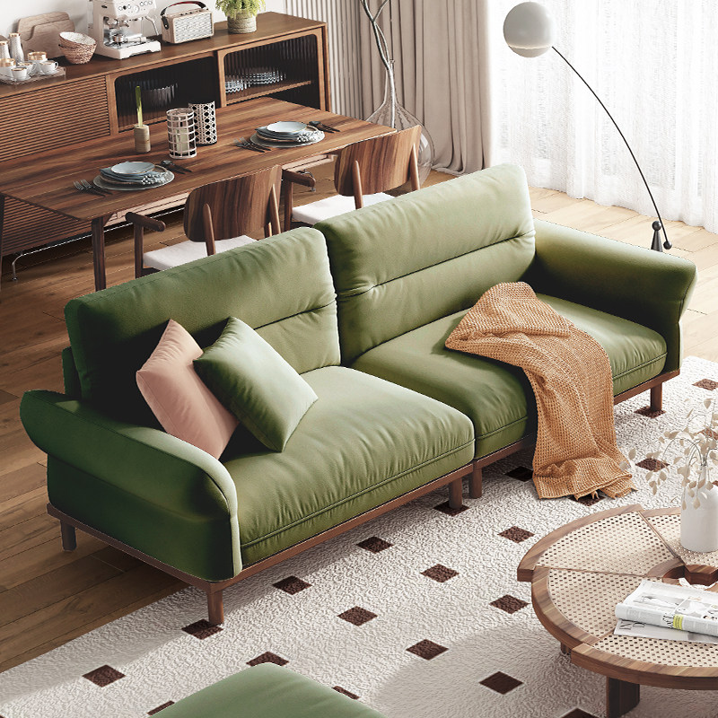 Japanese-style solid wood sofa all solid wood fabric sofa living room Nordic minimalist small apartment in-line sofa removable and washable