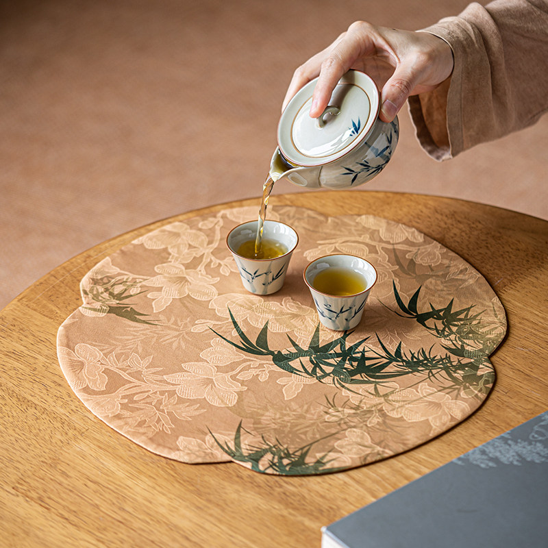 Painting sequel cloud yarn Haitang tea mat New Chinese meditation Waterproof Dry Bubble Mat Tea Tray Cushion Retro fabric Double-sided-Taobao