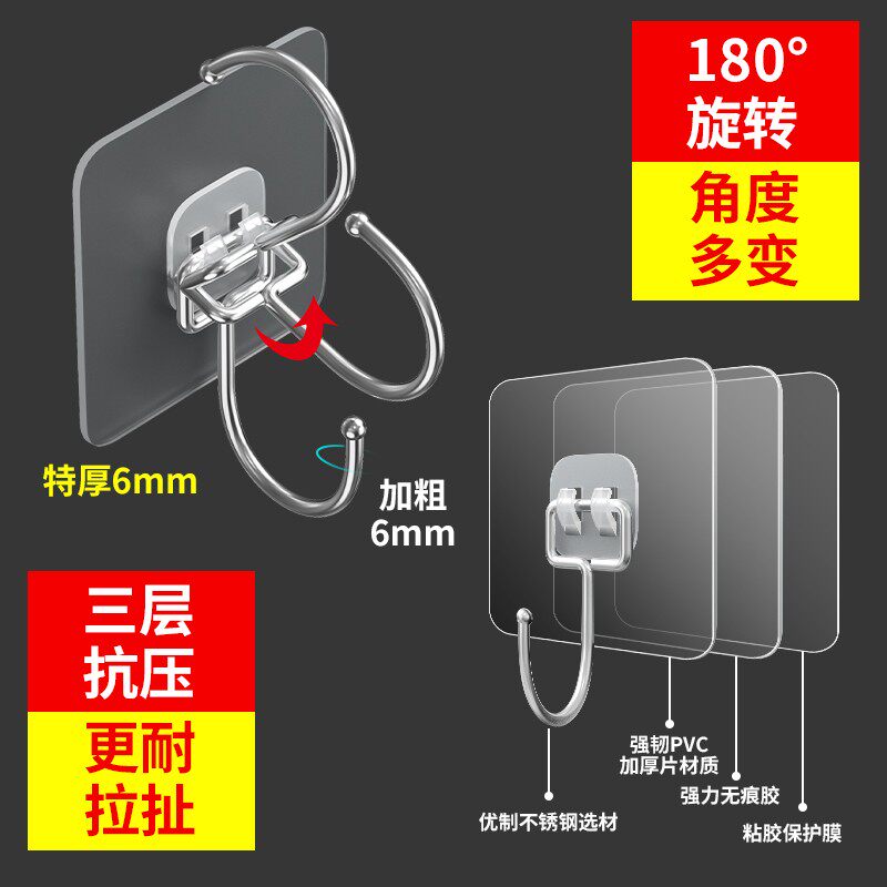 Hanging clothes hook Hook Powerful Viscose Free to punch bearing Significant Sticky Hook Wall-mounted Wall wall Wardrobe Bathroom Toilet-Taobao