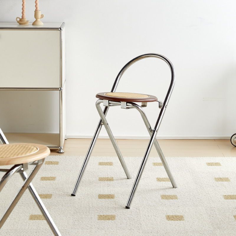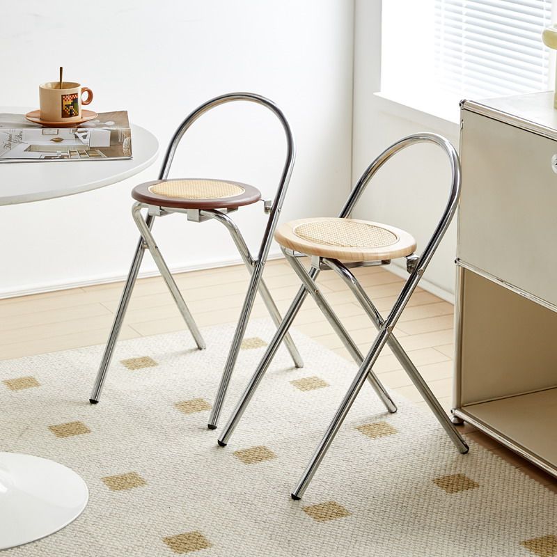 Folding chair rattan chuckleback dining chair Log Silence Nordic Minima Household Round High Stool Can Be Piled Up Bar Chair-Taobao