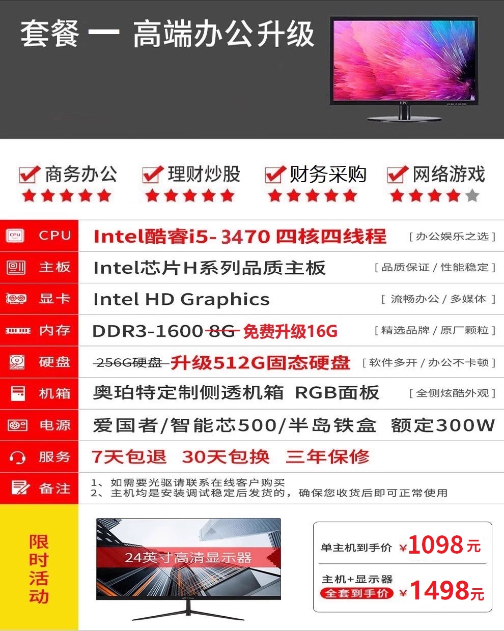 Intel Desktop Computer i5 16G 512G Home Computer Office Private Group Computer Host Full set-Taobao